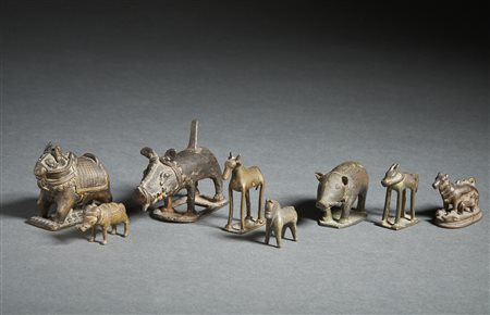 Arte Indiana Gruppo di 8 figure zoomorfe in bronzo