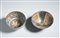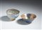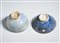 . . Cm 12,70 x 8,20. In pasta silicea, su alto piede, decorate in blu sottocoperta e dipinte a lustro con uccelli in riserva una e racemi stilizzati l'altra.