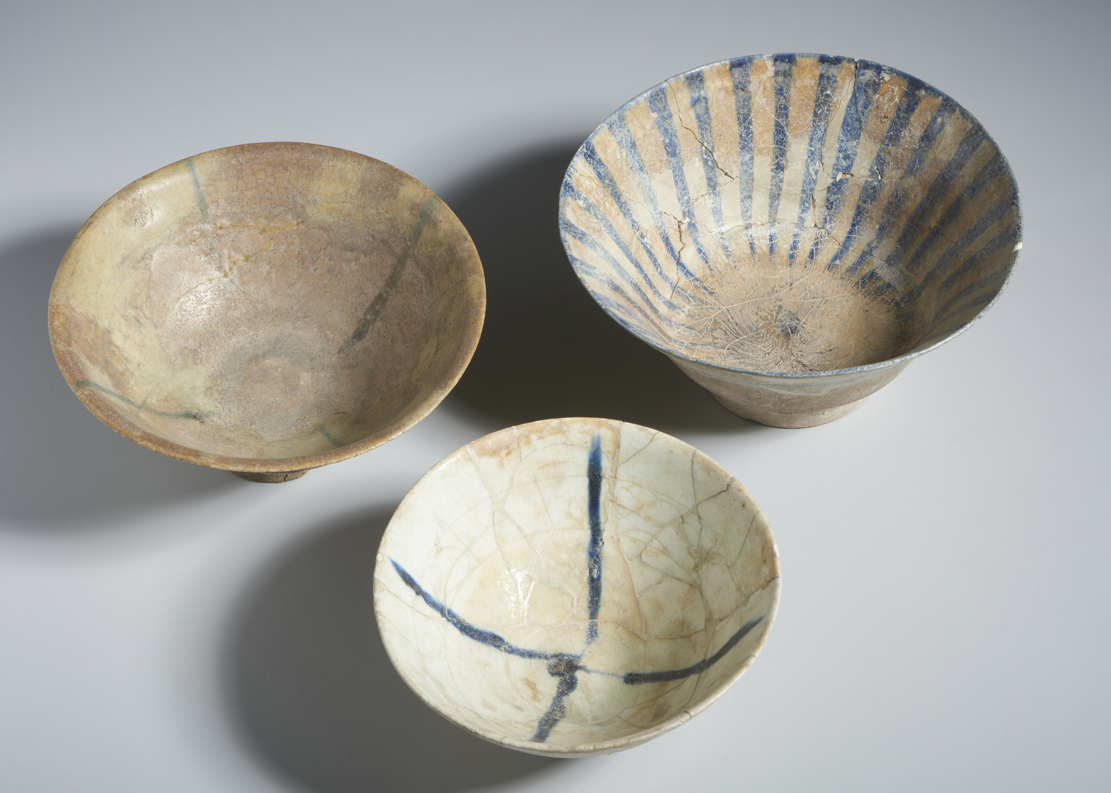 Arte Islamica - Tre ciotole con colature di blu cobalto Iran, Kashan, XII - XIII secolo .