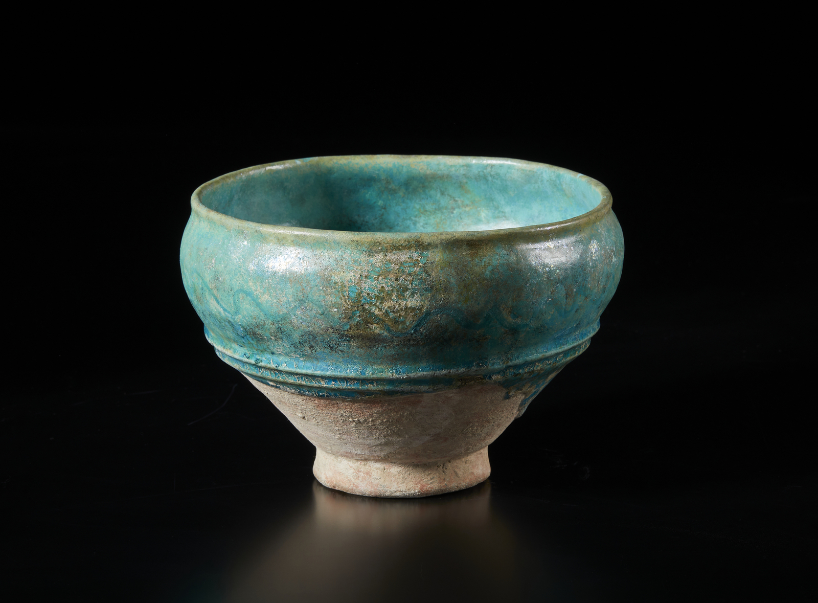 Arte Islamica - Grande ciotola con invetriatura turchese Iran, Kashan, XII secolo .