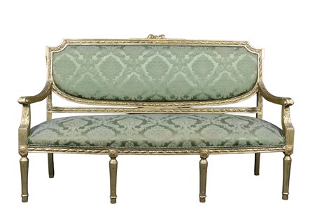 DIVANO in legno finemente intagliato e dorato Sicilia XIX secolo h cm 103 x 160 x 57