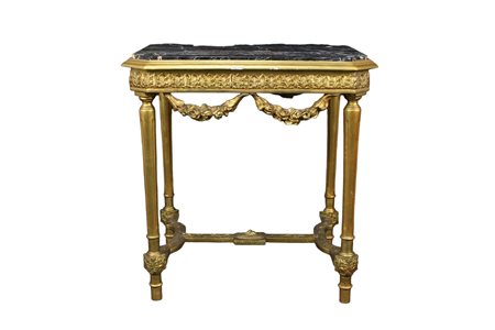 TAVOLINO DA SALOTTO in legno finemente intagliato e dorato Sicilia XIX secolo h cm 79 x 75 x 55