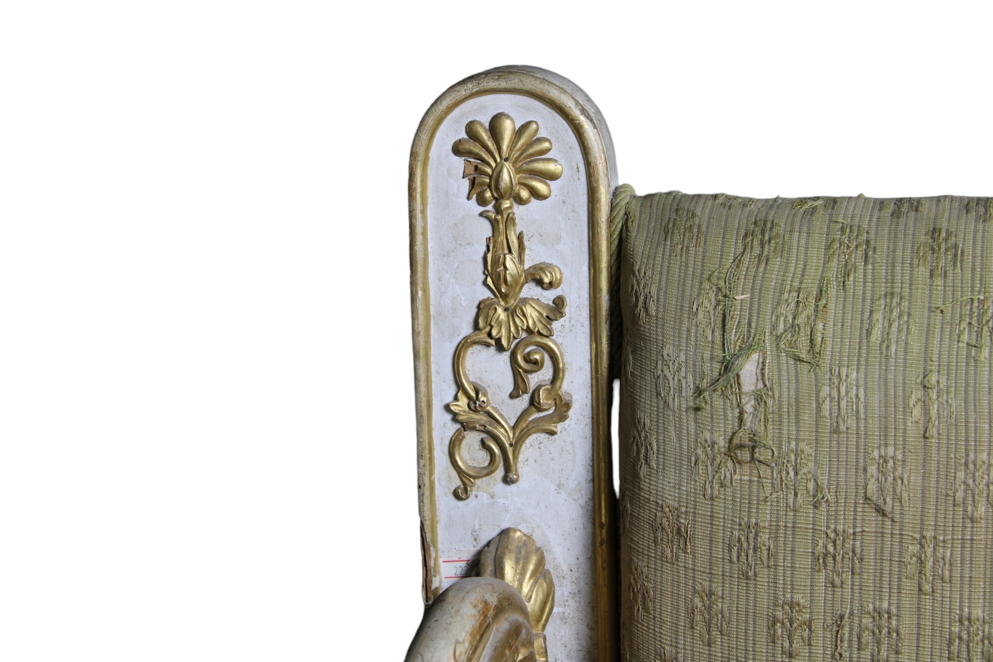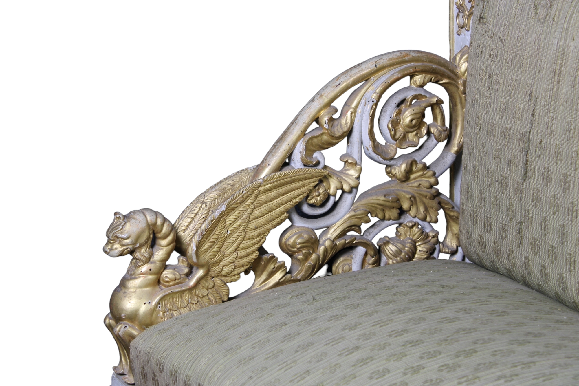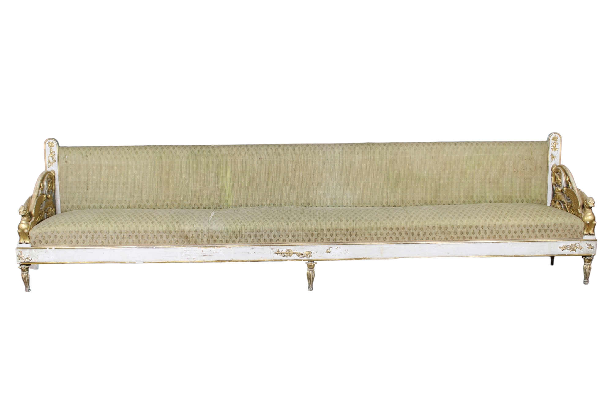 COPPIA DI MONUMENTALI PANCHE DA PALAZZO NOBILIARE in legno finemente scolpito, laccato e dorato 1770-1805