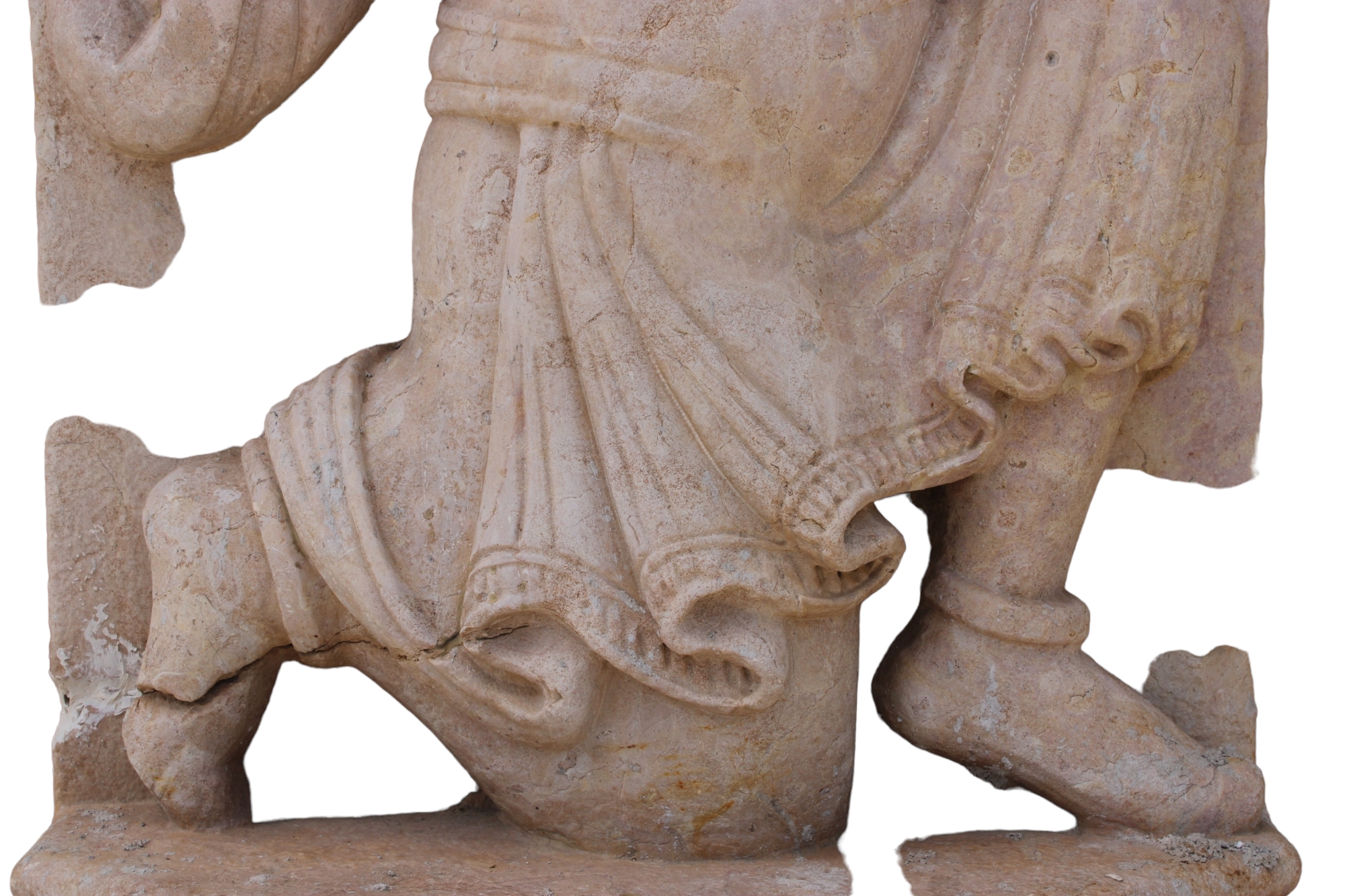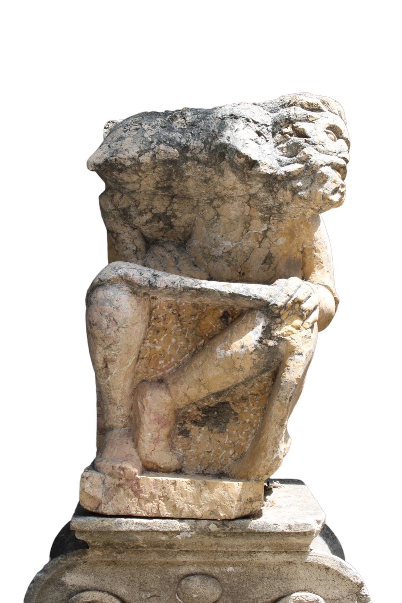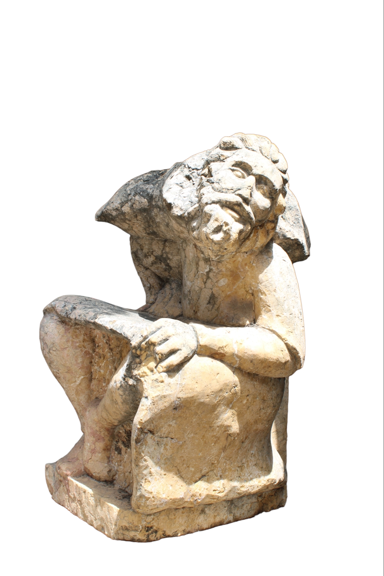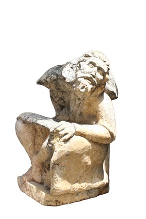 ELEMENTO in marmo giallo di Verona, raffigurante personaggio Italia XIX - XX secolo h cm 78 x 50 x 48