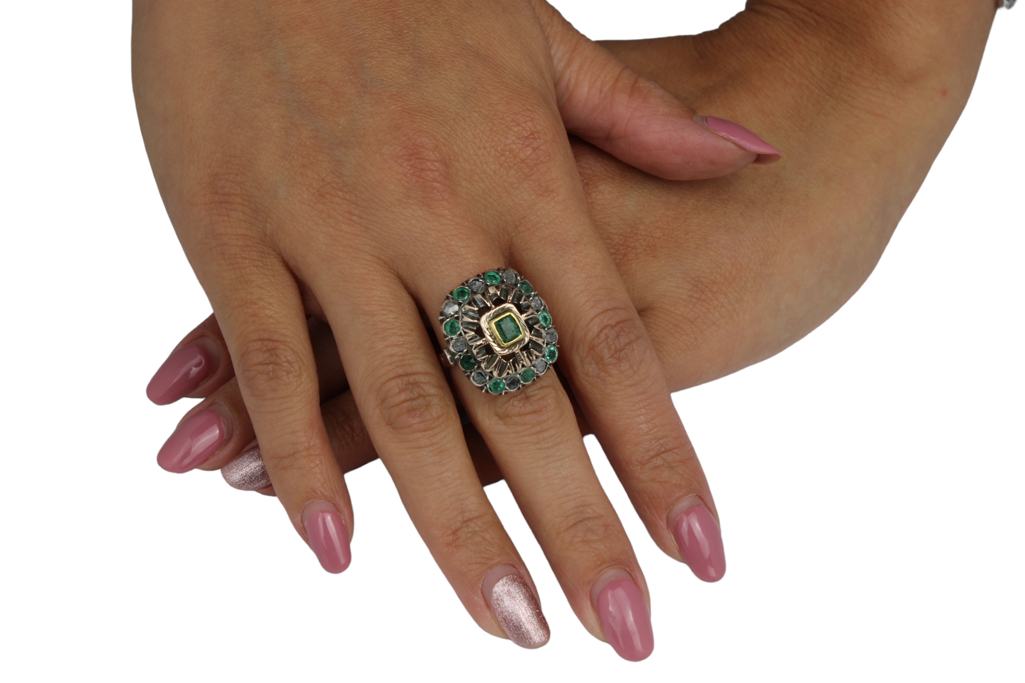 ANELLO in oro coppella diamanti e smeraldi con smeraldo centrale, 7,7 grammi