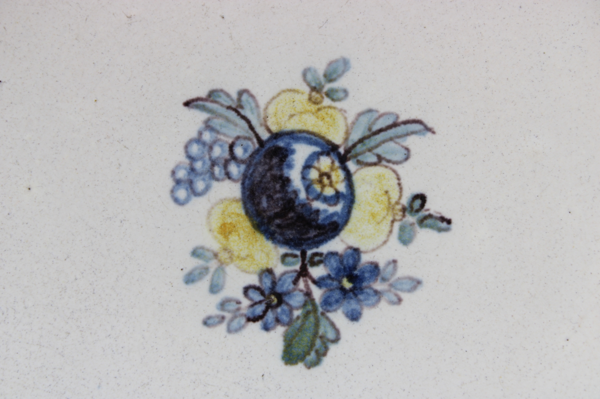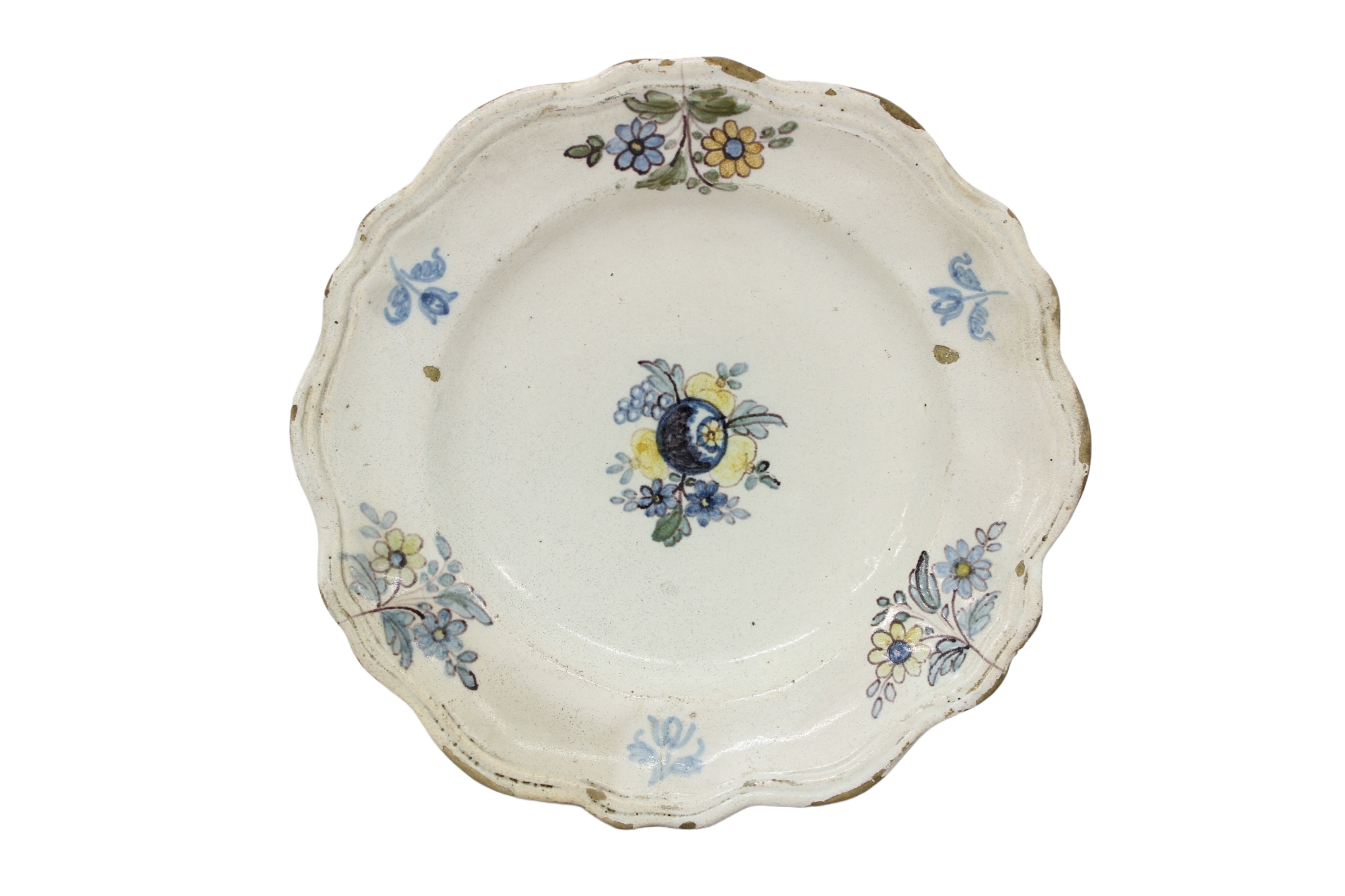 PIATTO in maiolica policroma dipinta a motivi floreali manifattura Cerreto XVIII secolo Ø cm 22,5