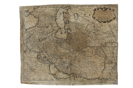 CARTINA GEOGRAFICA DE LISLE Guillaume (Persia) Carte de Perse. Titolo in alto a destra entro cartiglio dressée par G.DeLisle premier geographe de S.M.de l’Academie Royal de Sciences… stampata ad Amsterdam sec.XVIII. incisione rame