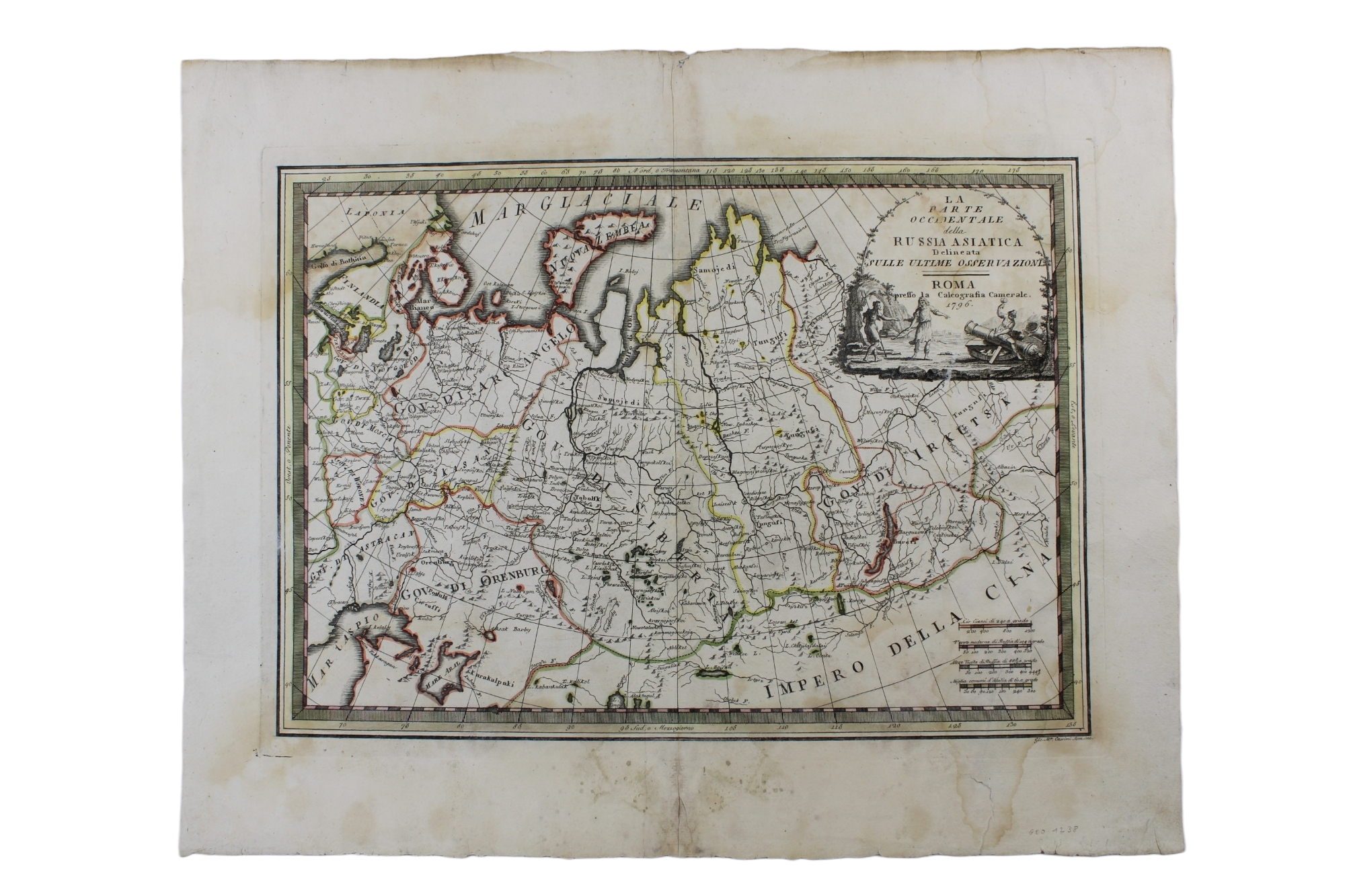 CARTINA GEOGRAFICA CASSINI Giovanni Maria (1743-1824) ( Russia) La parte occidentale della Russia Asiatica delineata sulle ultime osservazioni. Carta geografica stampata a Roma nel 1796. Incisione rame