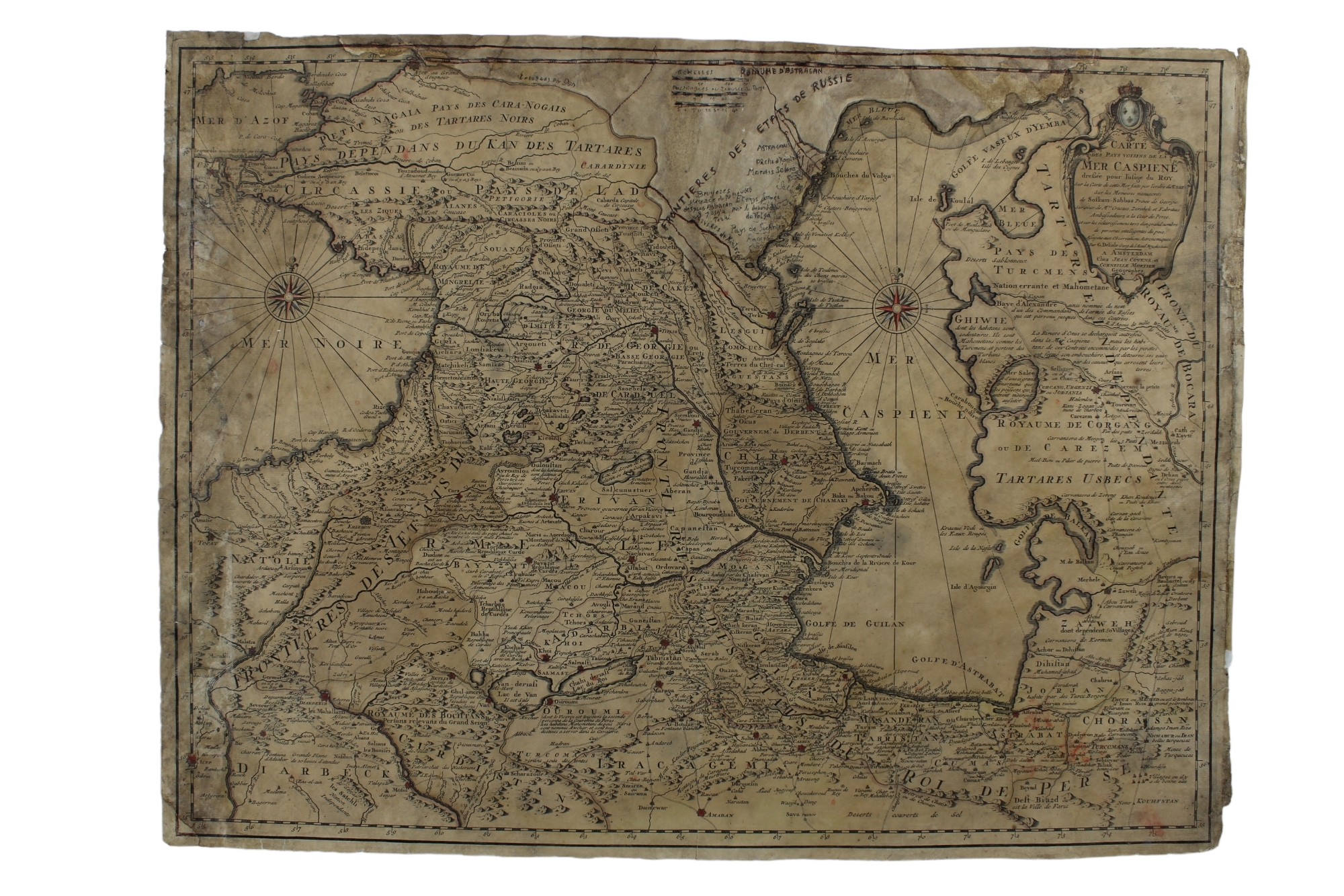 CARTINA GEOGRAFICA DE LISLE Guillaime. Carte des pays voisins de la Mer Caspiene, stampata ad Amsterdam sec XVIII , Incisione rame