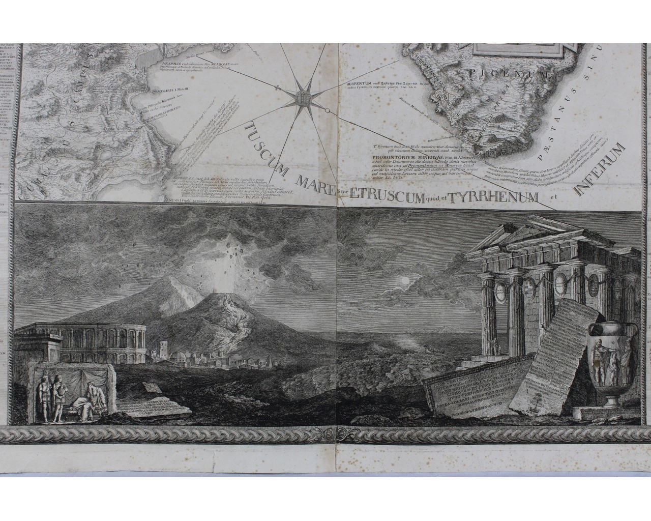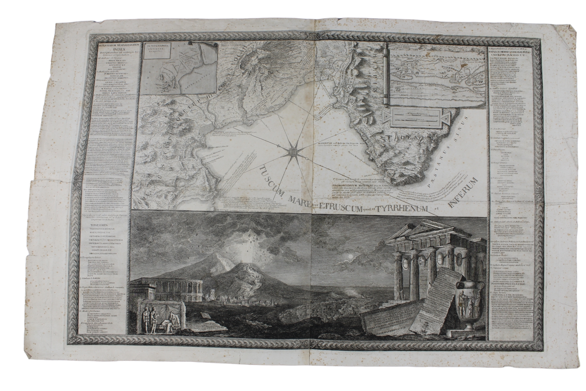 CARTINA GEOGRAFICA CARDON Antoine Alexandre Joseph ( Bruxelles 1739-1822) (Napoli) Iconographia Antiquae Neapolis. Titolo entro riquadro in alto a sinistra. Carta con orografia a monticelli. E' raffigurato il porto di Napoli e d'intorni. A metà del foglio è incisa la veduta del Vesuvio in piena eruzione che domina una piana in basso ricca di reperti archeologici e un tempio dorico. Inc. rame