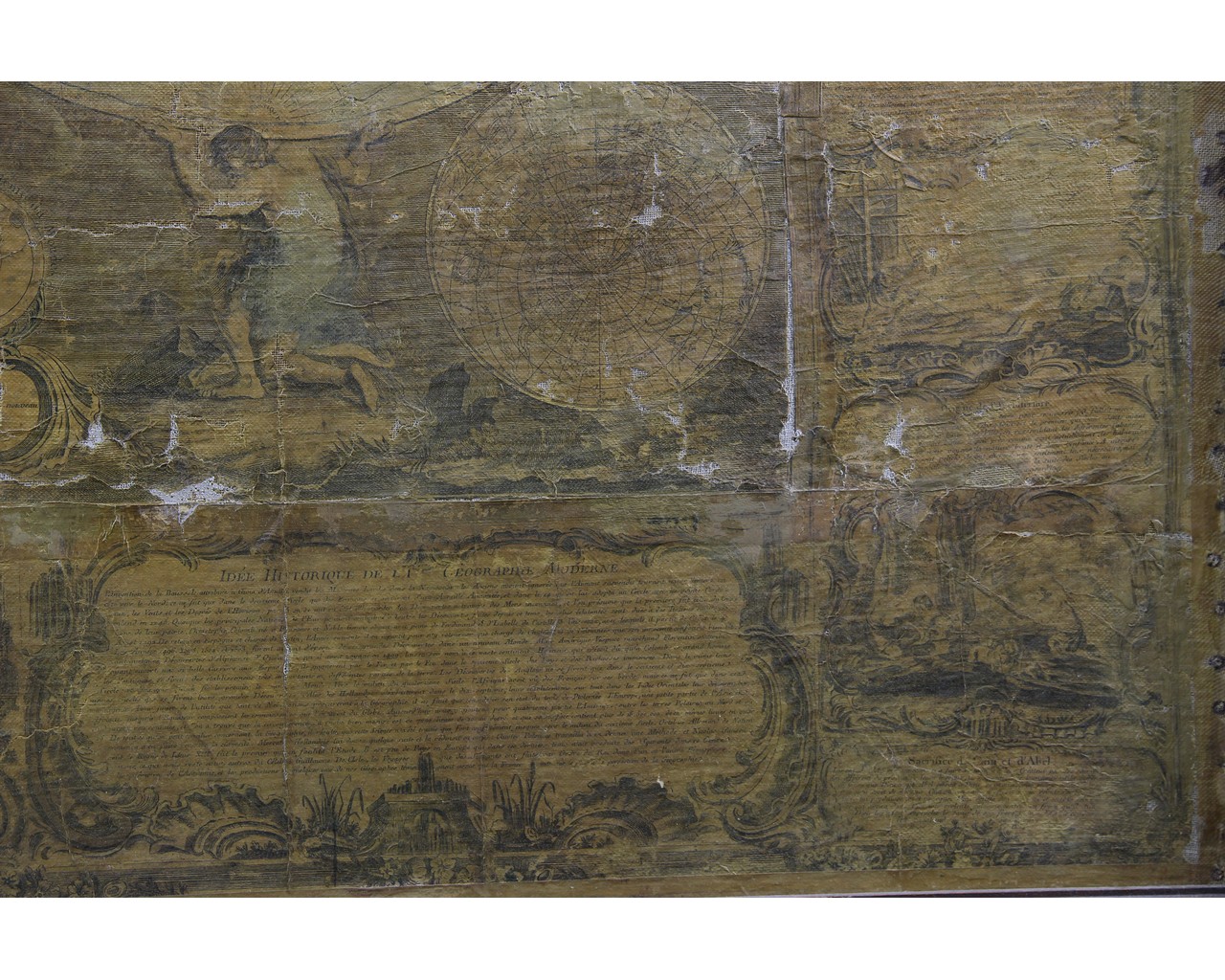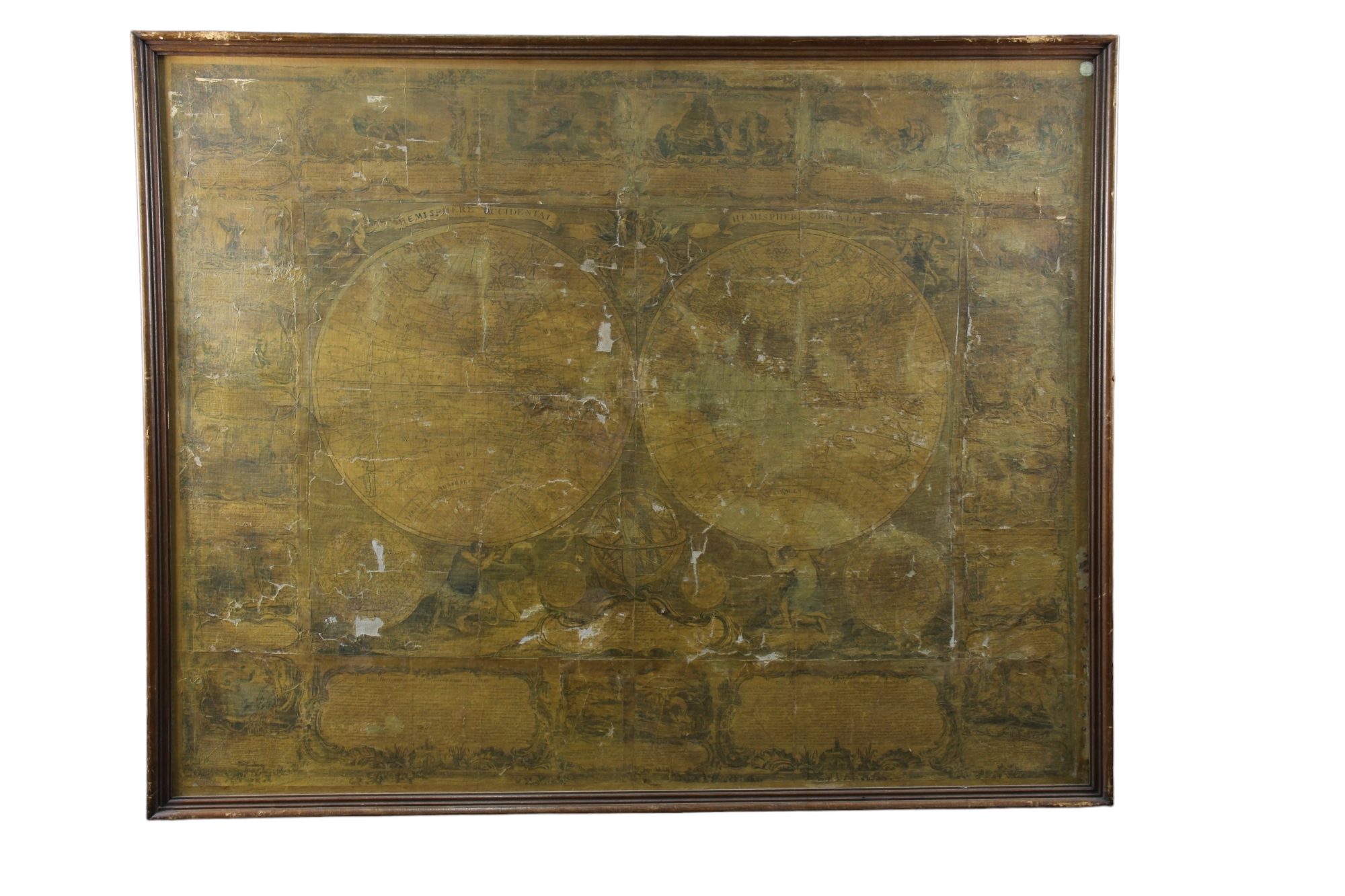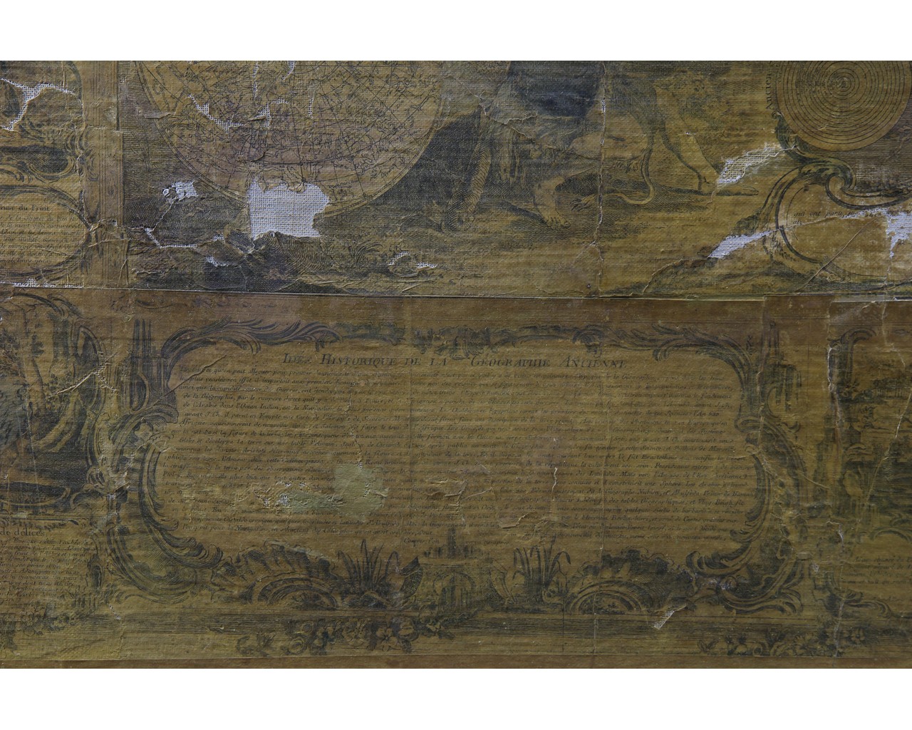 IMPORTANTE CARTINA GEOGRAFICA SU CARTA APPLICATA SUTELA Raffigurante Emisfero Occidentale e Orientale, Parigi 1788 già collezione Pietro Accorsi, mancanze e usure del tempo h cm 120 x 150