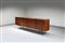 Credenza composta da due elementi in legno con struttura in metallo verniciato.