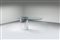 Base eccentrica stampata in acciaio, piano in cristallo molato.