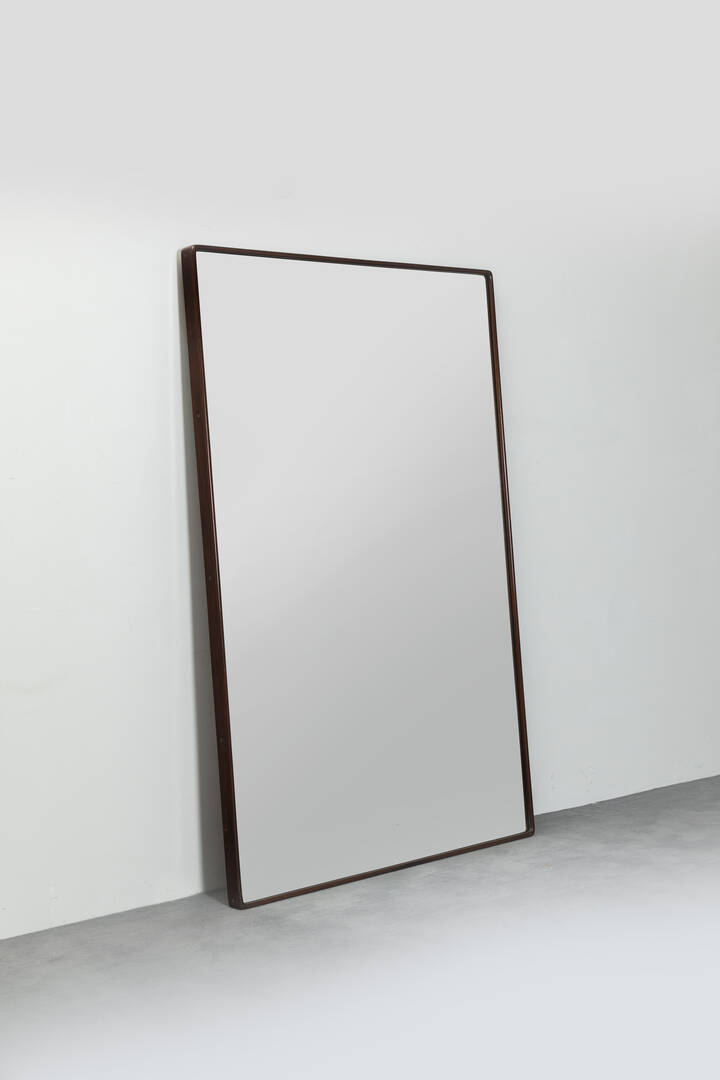 Grande specchiera con bordo in legno.