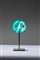 Maschera "moretta" in vetro verde con supporto in metallo verniciato nero.