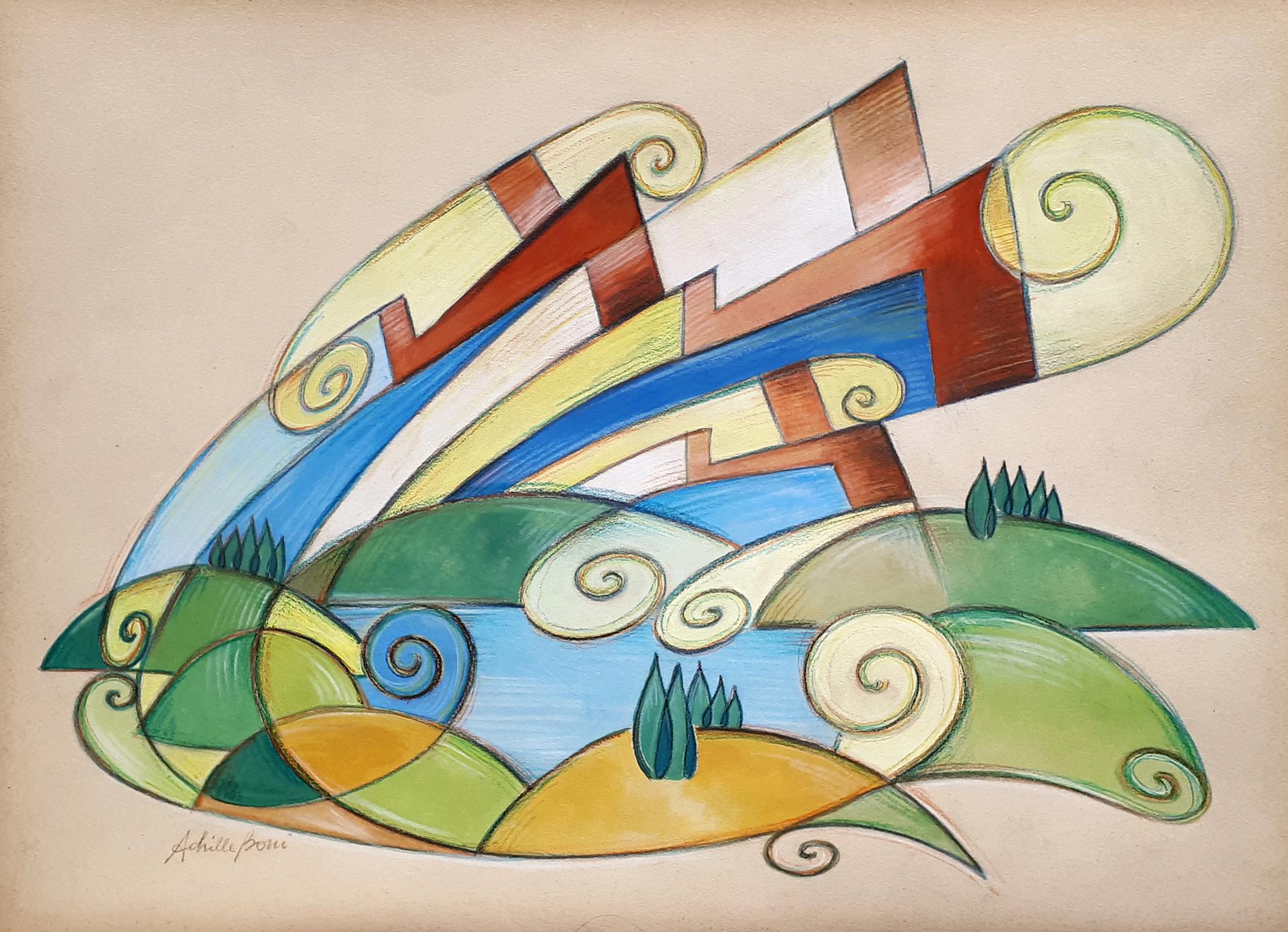 Lotto 5 | Achille Boni AEROPITTURA tecnica mista su carta, cm 23x32 firma