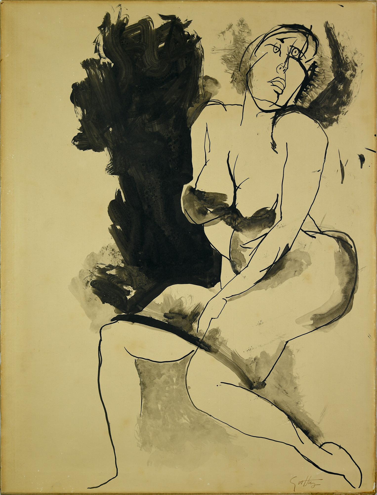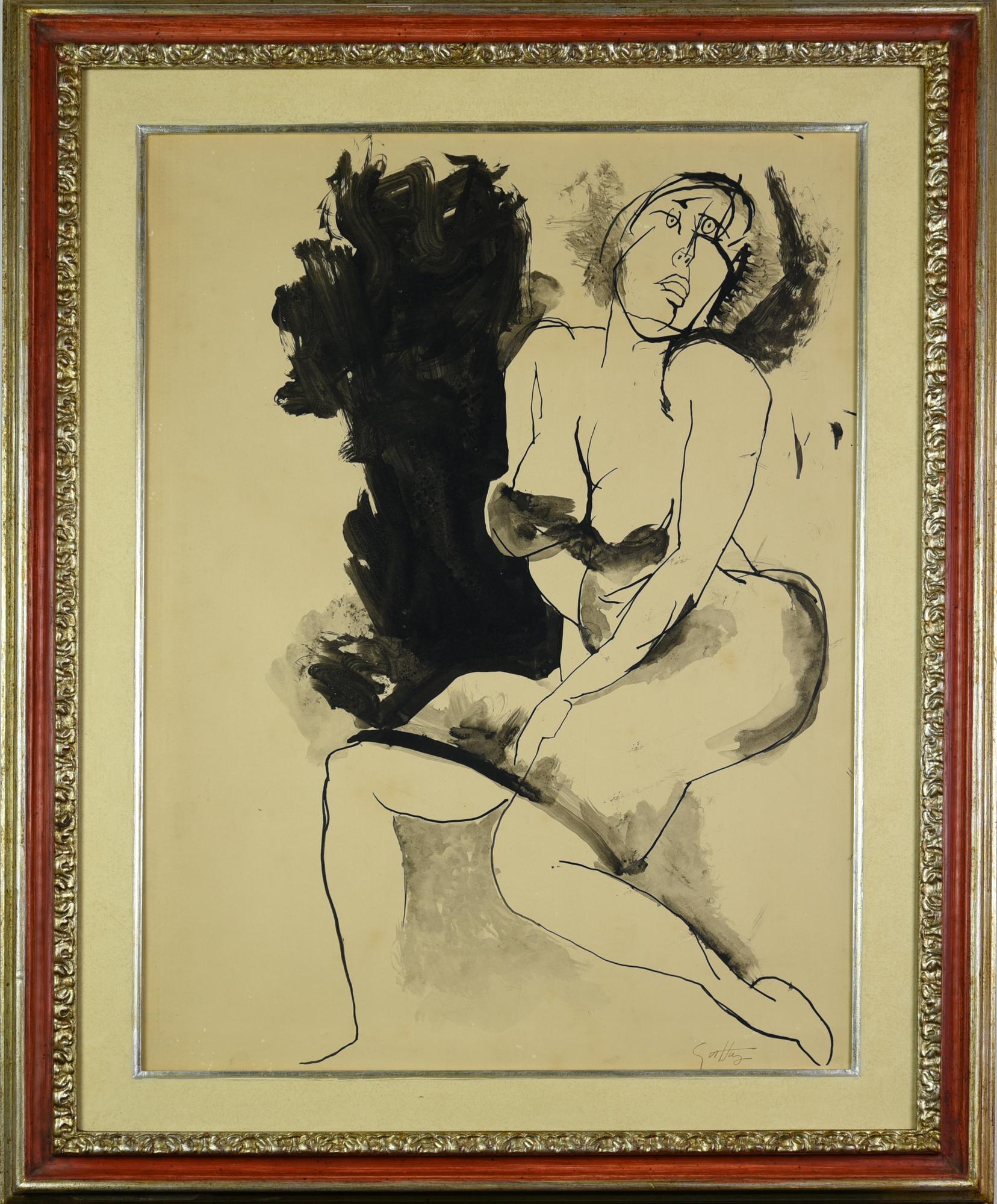 Renato Guttuso (1911 - 1987) FIGURA FEMMINILE, 1960 china acquarellata su...