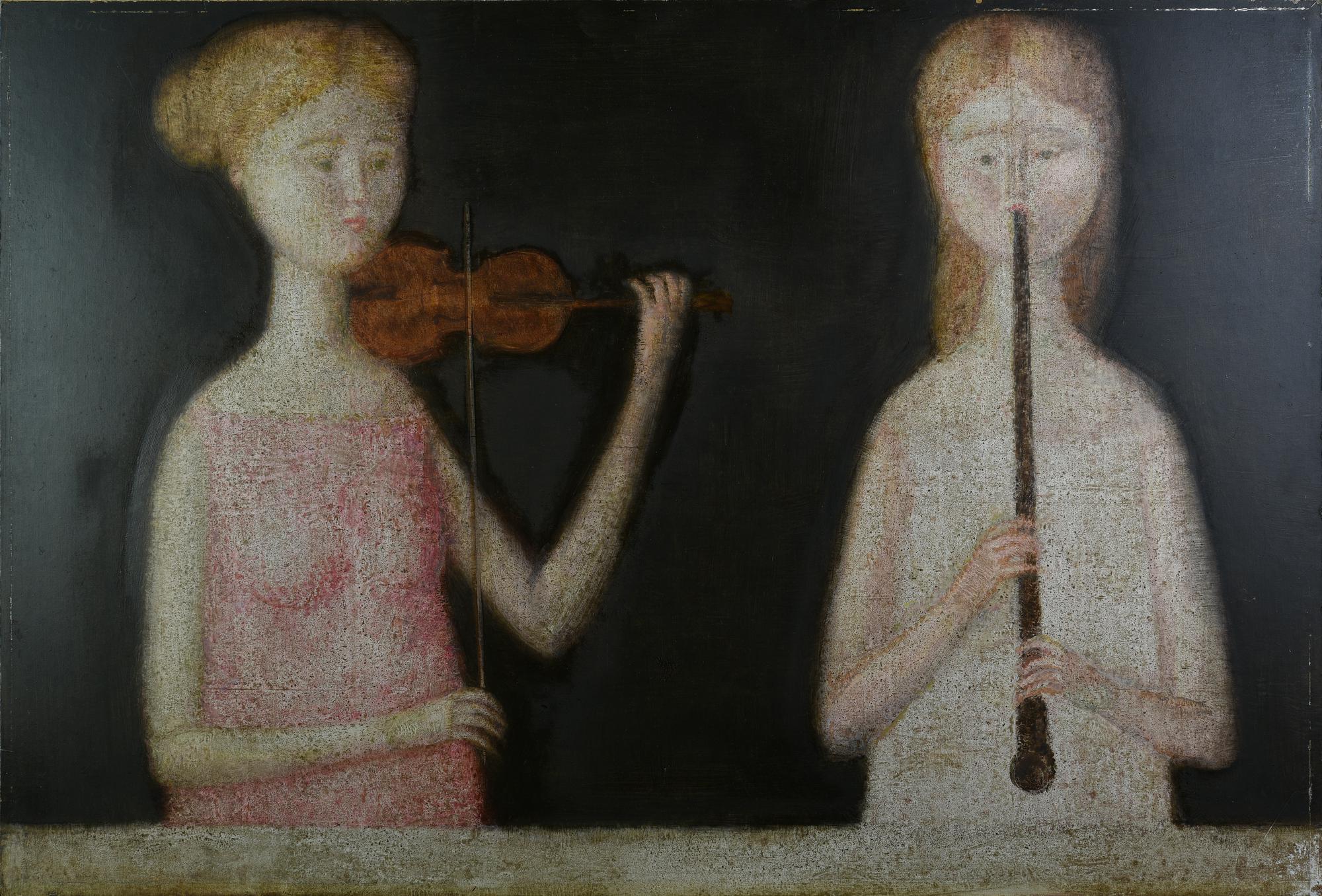Antonio Bueno (1918 - 1984) LE MUSICISTE, (1968 circa) olio su faesite, cm...
