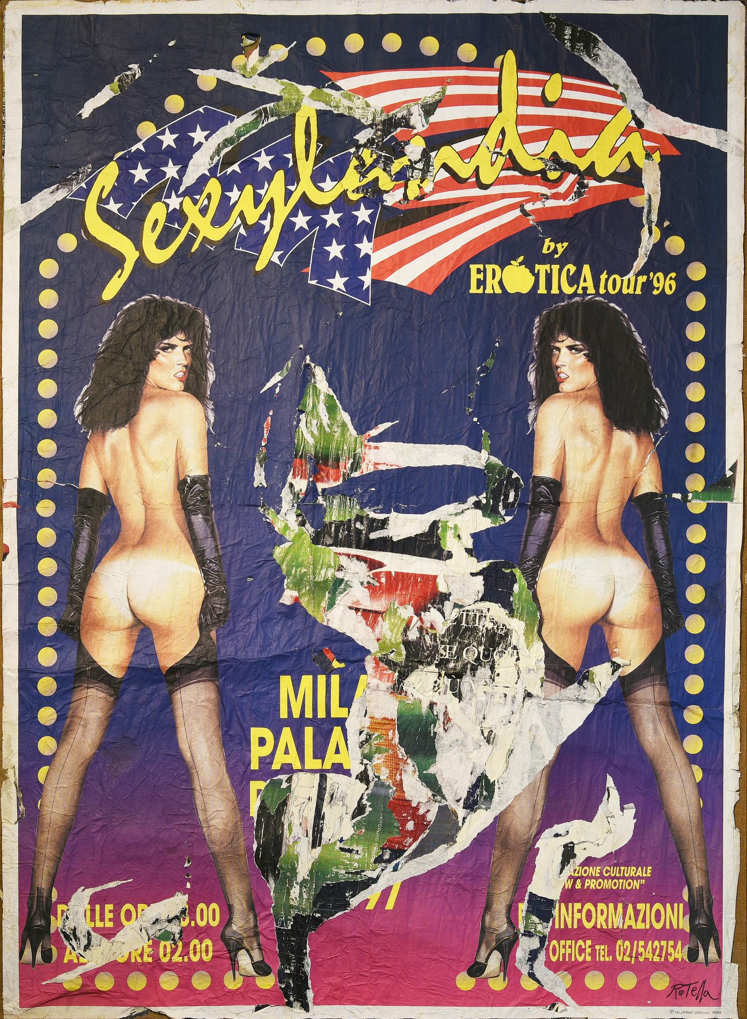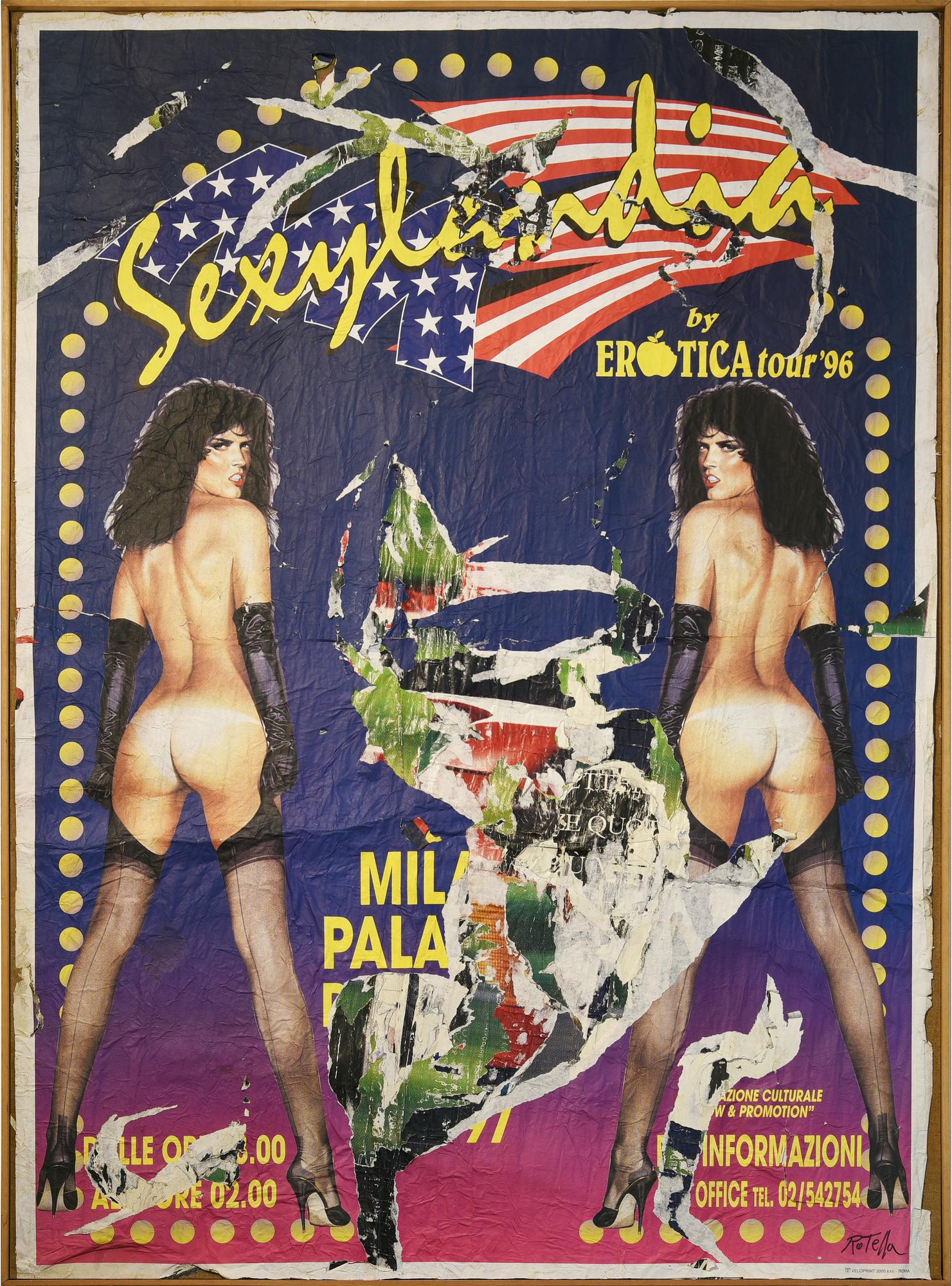 Mimmo Rotella (1918 - 2006) SEXILANDIA, 1996 decollage su tela, cm 195x140...