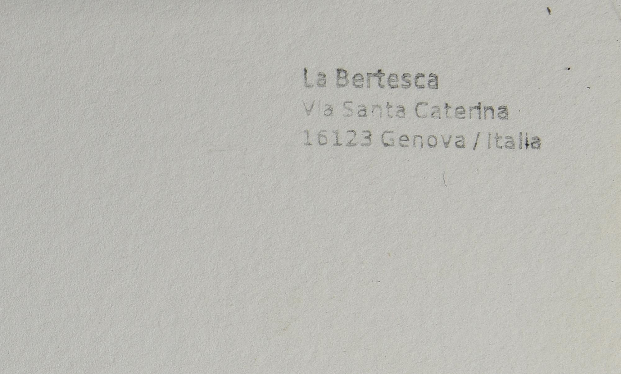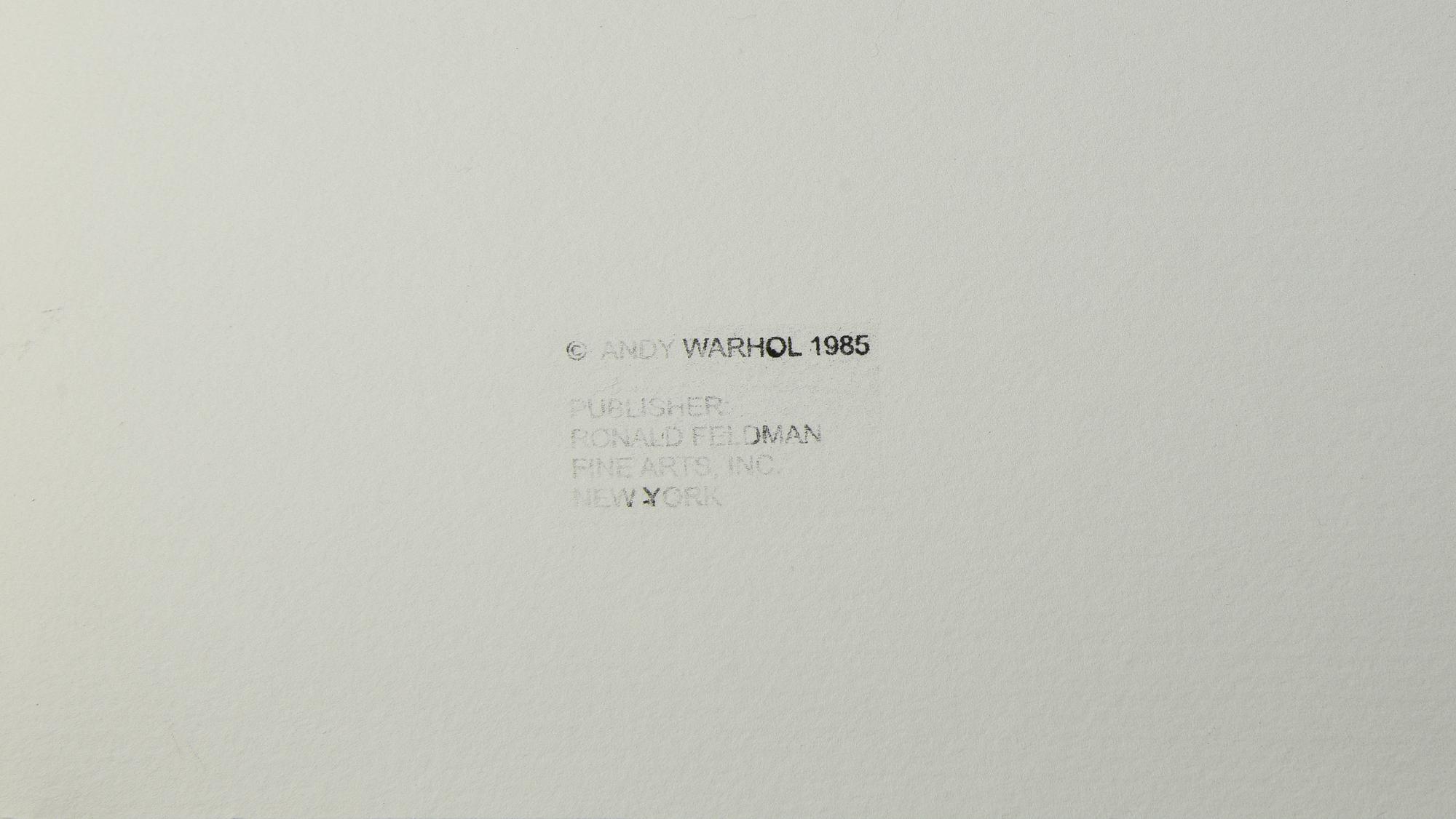 sul retro: timbro Galleria La Bertesca, Genova, timbro Andy Warhol e timbro Ronald Feldman Fine Arts Inc., New York