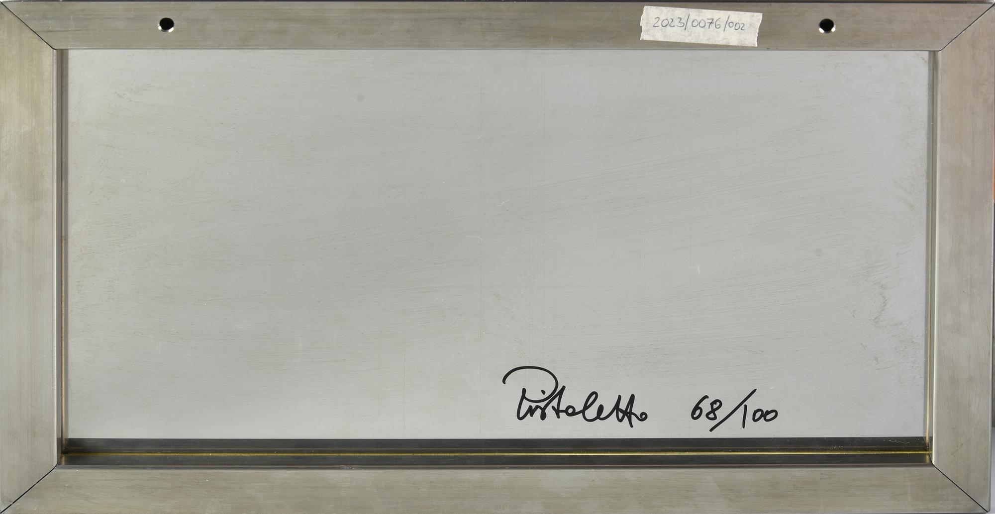 serigrafia su lastra in acciaio specchiato, cm 30x50; es.68/100