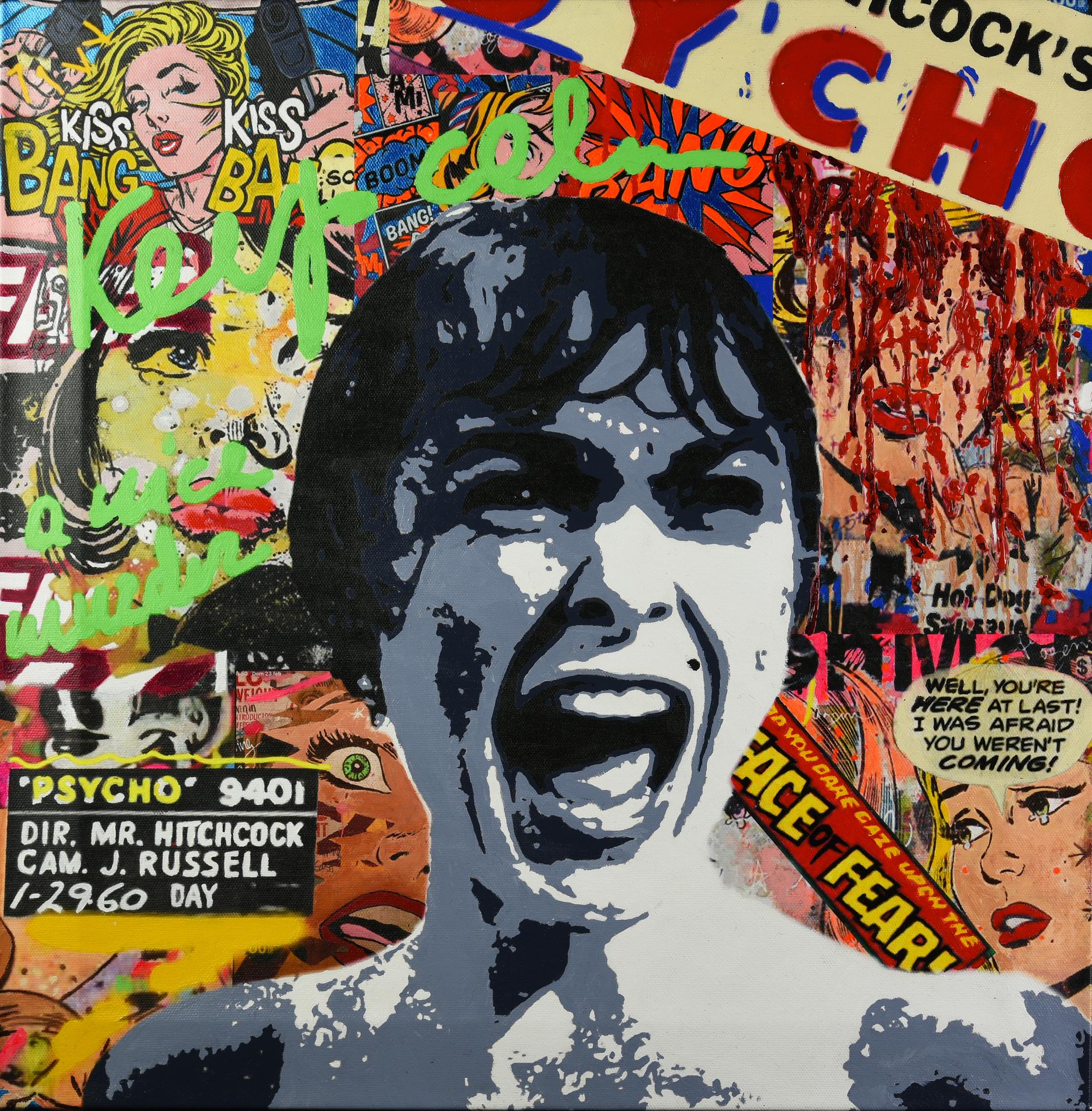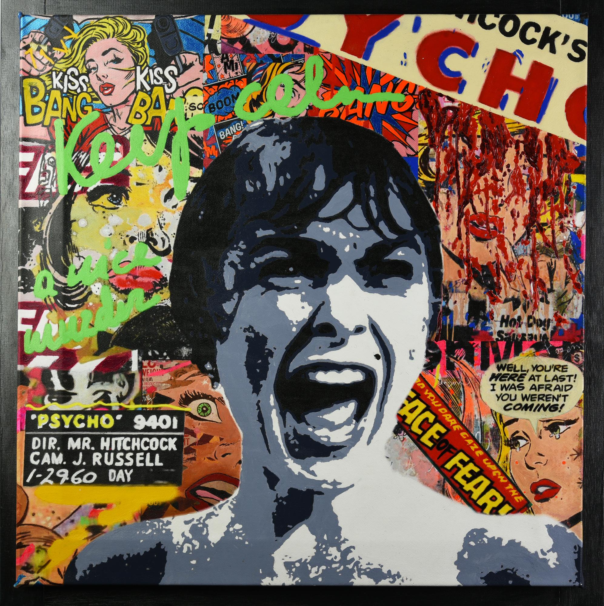 Iure Cormic (1957) PSYCHO, 2023 tecnica mista su tela, cm 50x50 sul retro:...