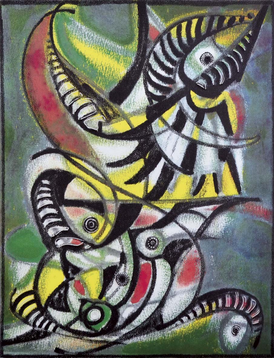 MASTROIANNI UMBERTO Fontana Liri 1910 - Roma 1998 Composizione litografia su carta estroflessa es. p.a. 70x50 firma in basso a destra tiratura in basso a sinistra timbro a secco il Cigno Galileo Galilei edizioni di arte e scienza in basso a sinistra