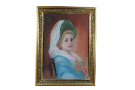 soggetto dama con cappello primi 900 anonimus h cm 50 x 35 / cornice h cm 62 x 47