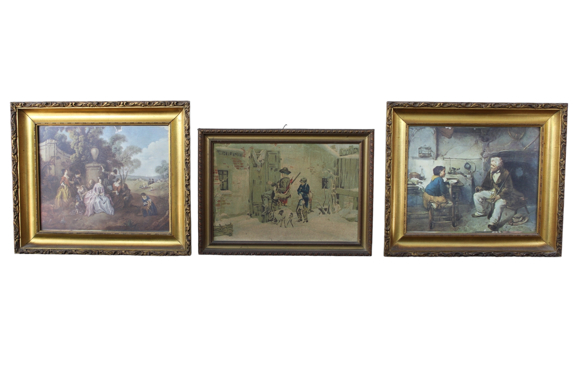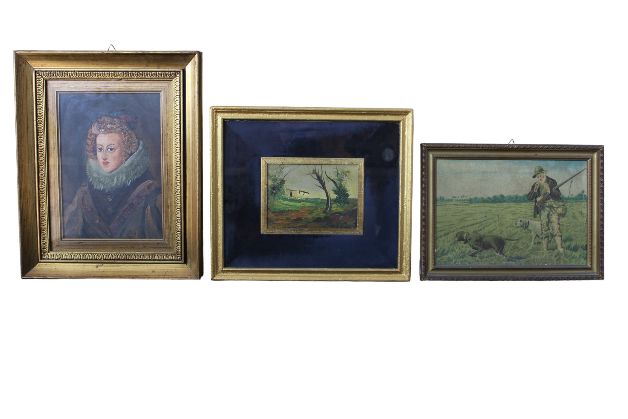 3 stampe e 3 dipinti con soggetti diversi primi 900 misure varie