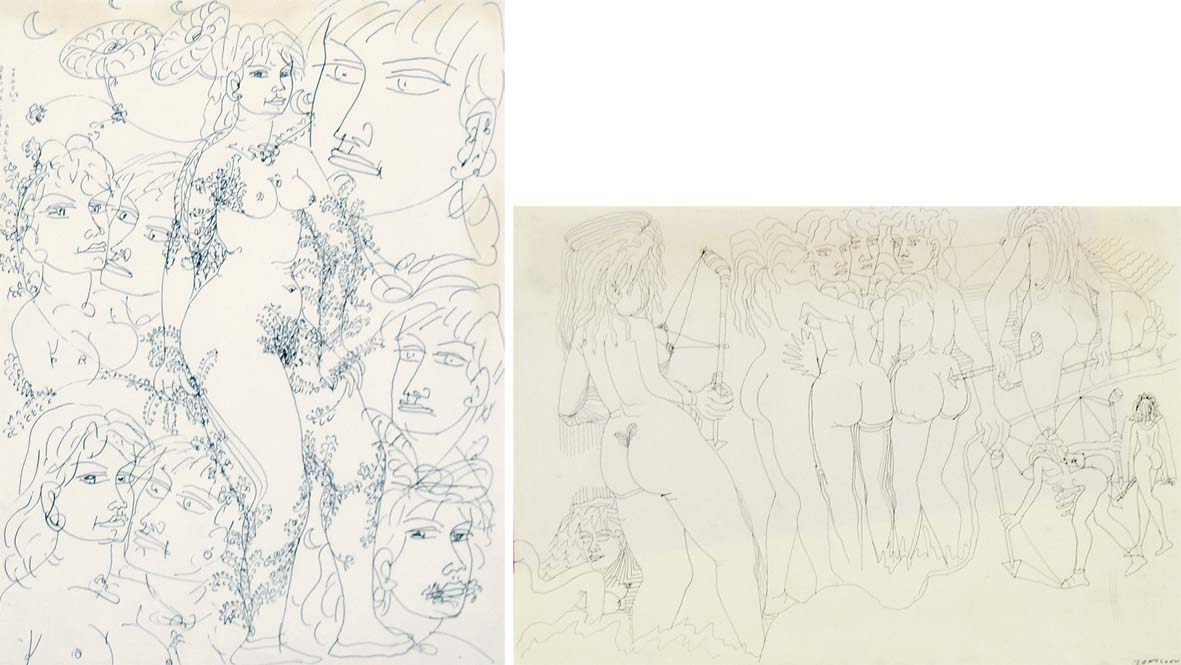 ZANCANARO TONO Padova 1906 - 1985 Brunalbica Aelle 1972 - Selinuntea 1973 lotto di 2 disegni a china su carta 35x27 - 21x30 entrambi firmati autentica dell'Archivio Storico Tono Zancanaro a cura del prof. Manlio Gaddi nr. Arch 14403 e 14401 su foto