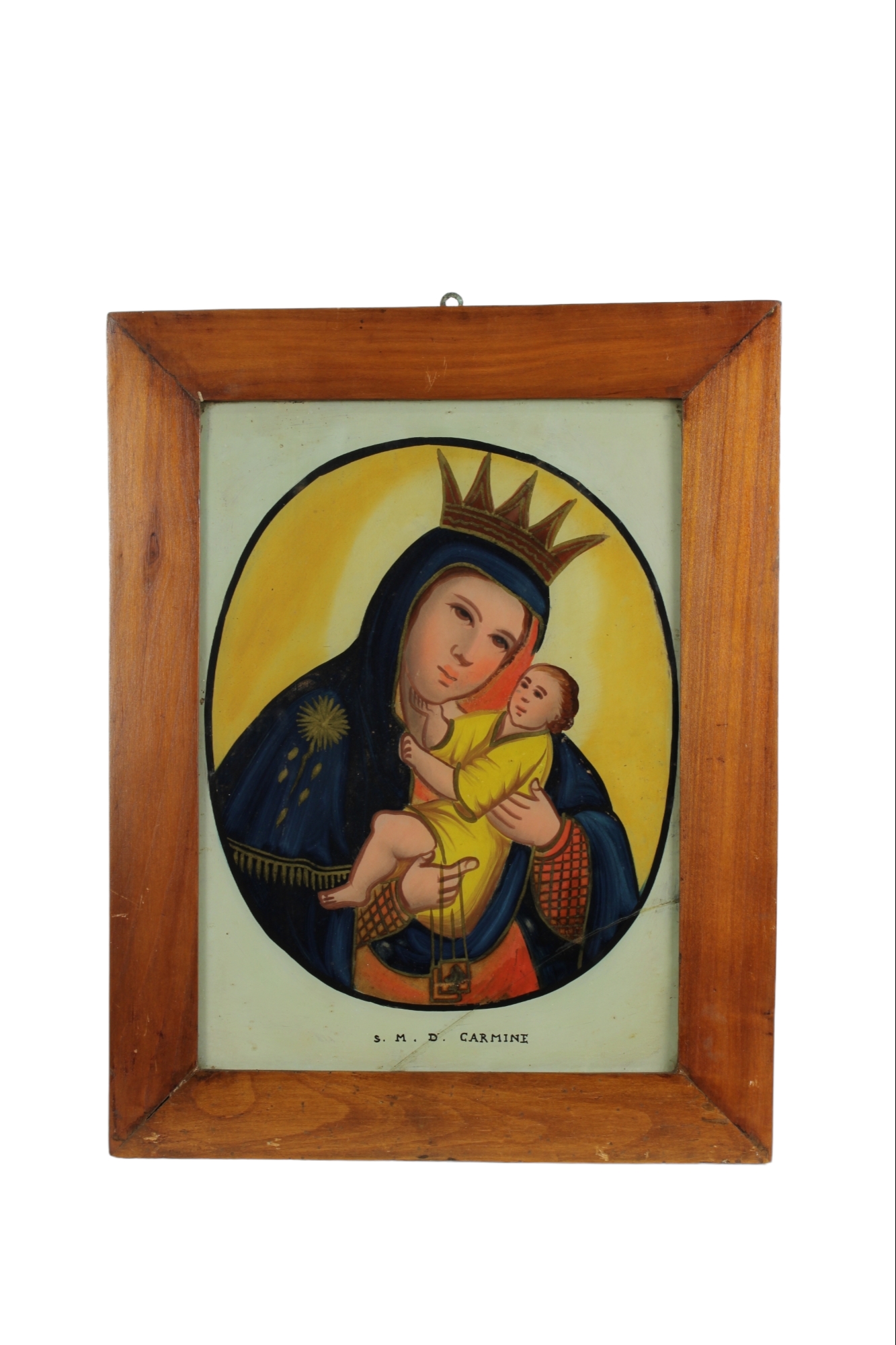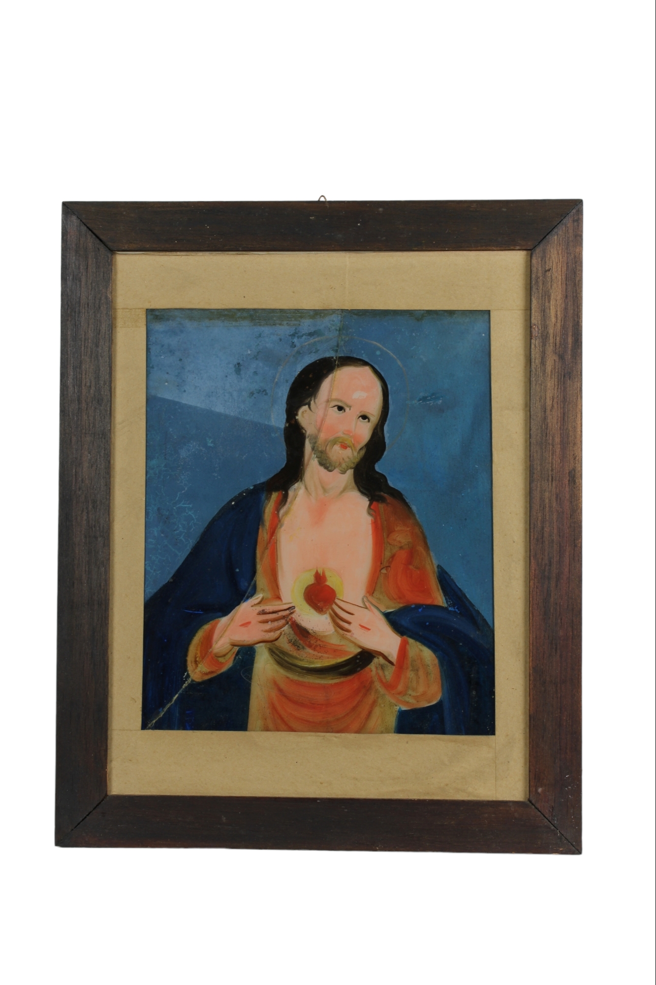 2 dipinti sottovetro di cui uno rotto ed 1 stampa XX secolo misure varie