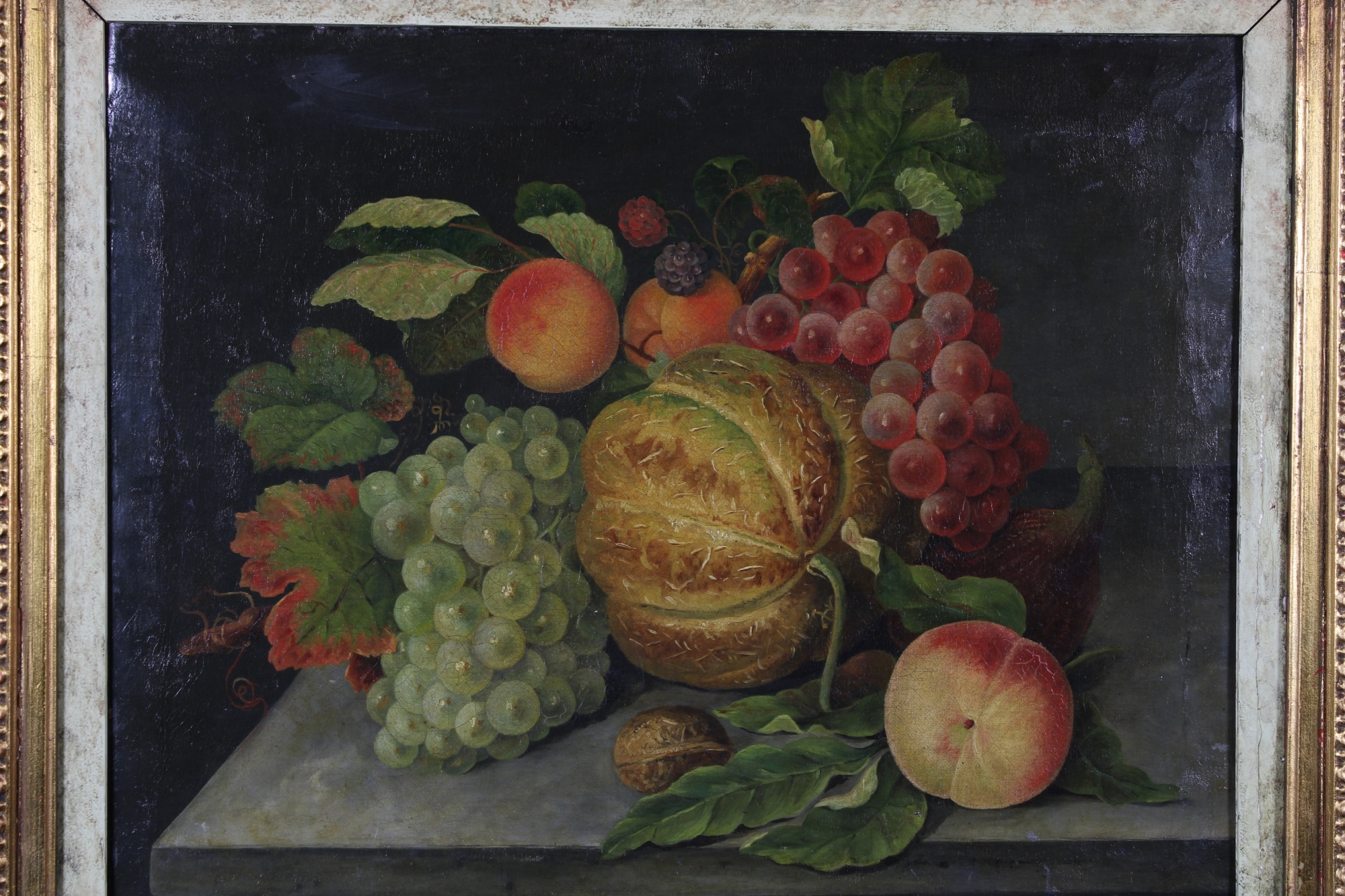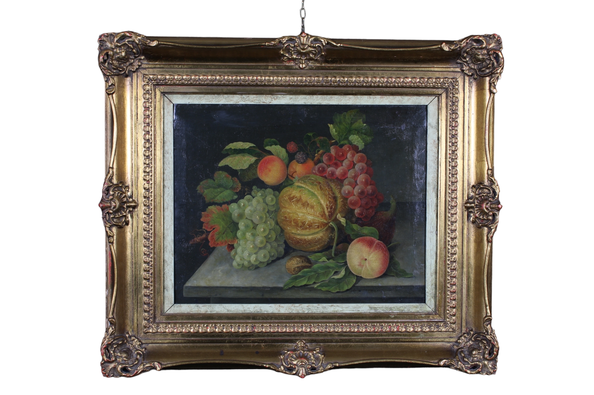 Raffigurante natura morta con frutta, cornice dorata Italia primi 900 h cm 40 x 49 / cornici h cm 60 x 70