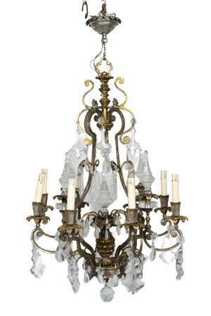 in ferro battuto,ottone e prismi in vetro Sicilia primi 900 h cm 96 x 61