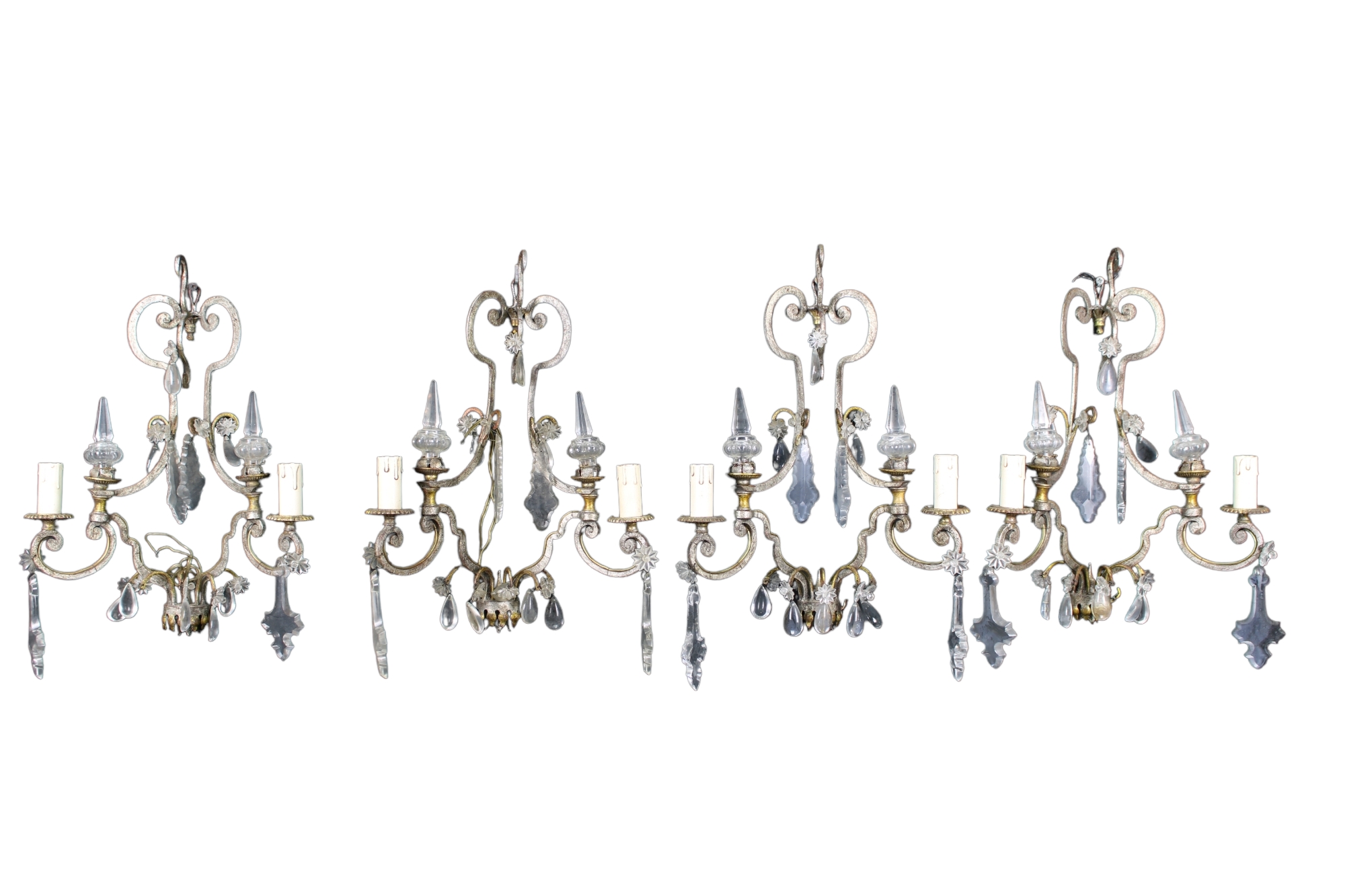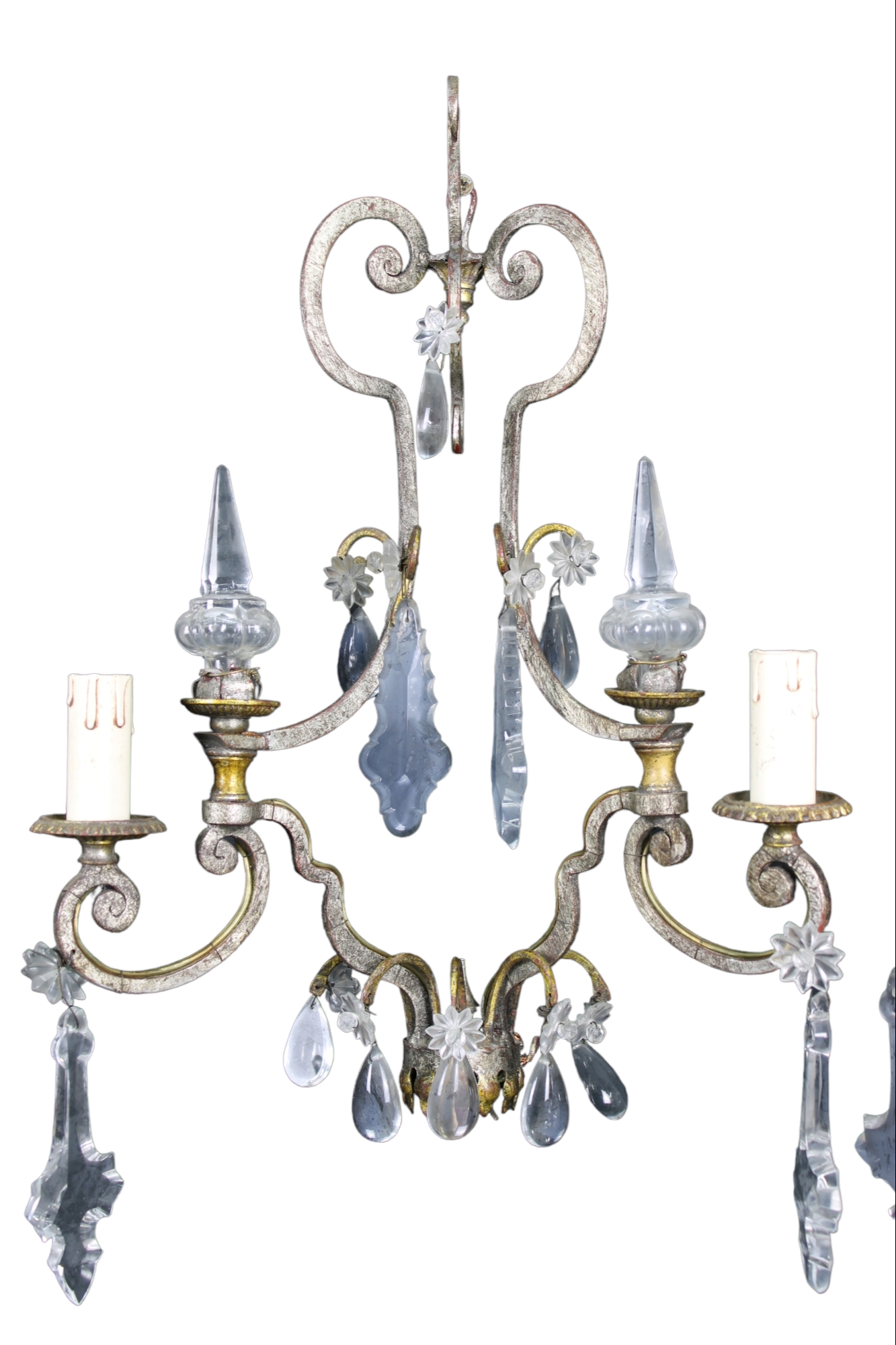 in ferro battuto,ottone e prismi in vetro Sicilia primi 900 h cm 45 x 30