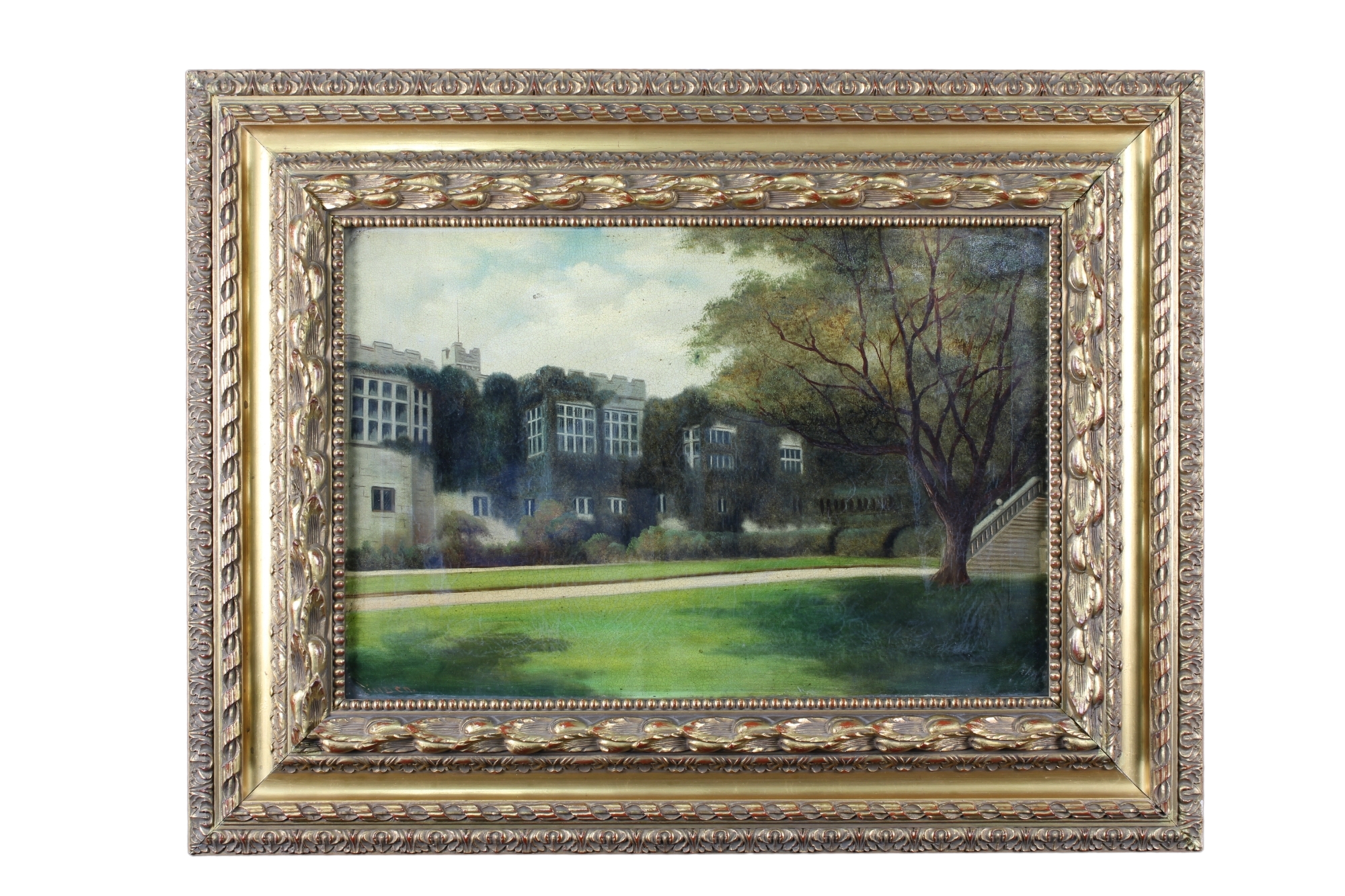 Raffigurante caseggiato, reca sul retro nome della pittrice h cm 40 x 60 / cornice h cm 67 x 87