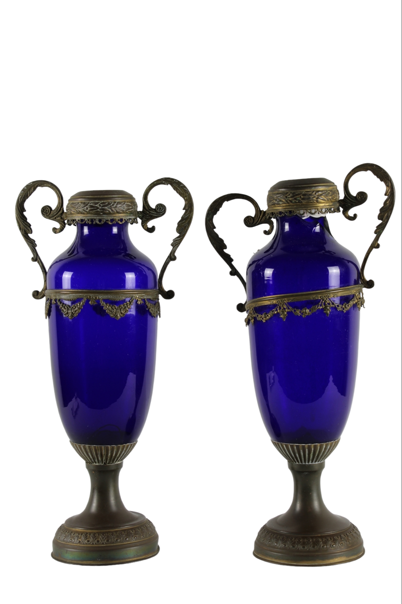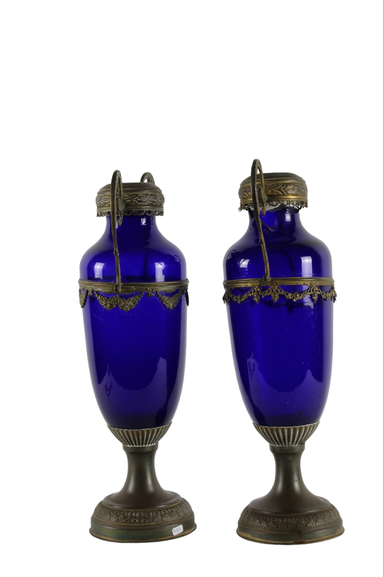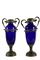 corpo in porcellana blu e decorati da base, anse e bocca in ottone, rotture vintage italiano h cm 39 x 20 x 12