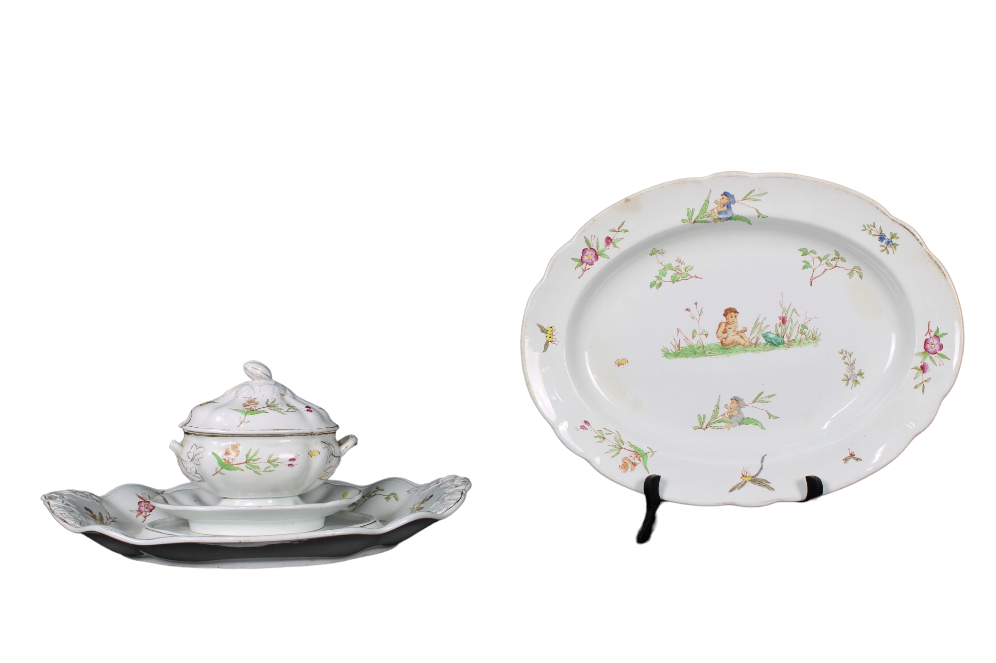 1 saliera con piatto e 1 vassoio in porcellana Bavaria XX secolo misure varie