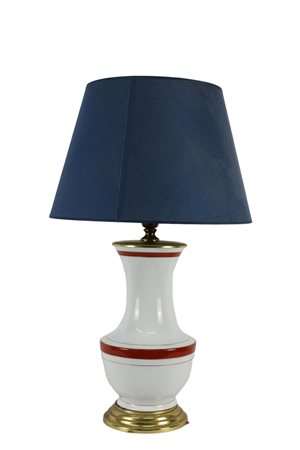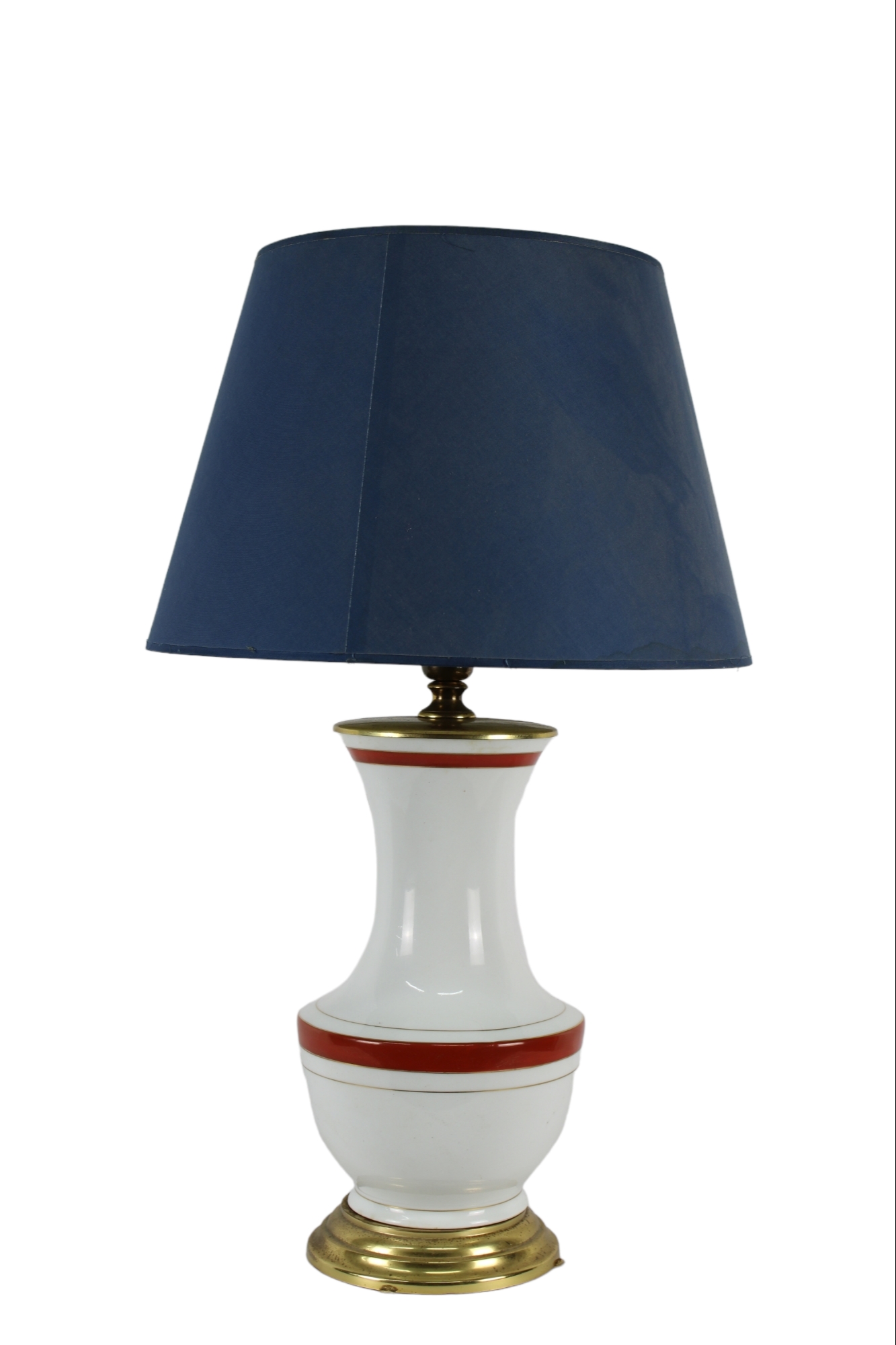 in opaline con paralume in stoffa di colore blu Italia XX secolo h cm 74,5 x 44