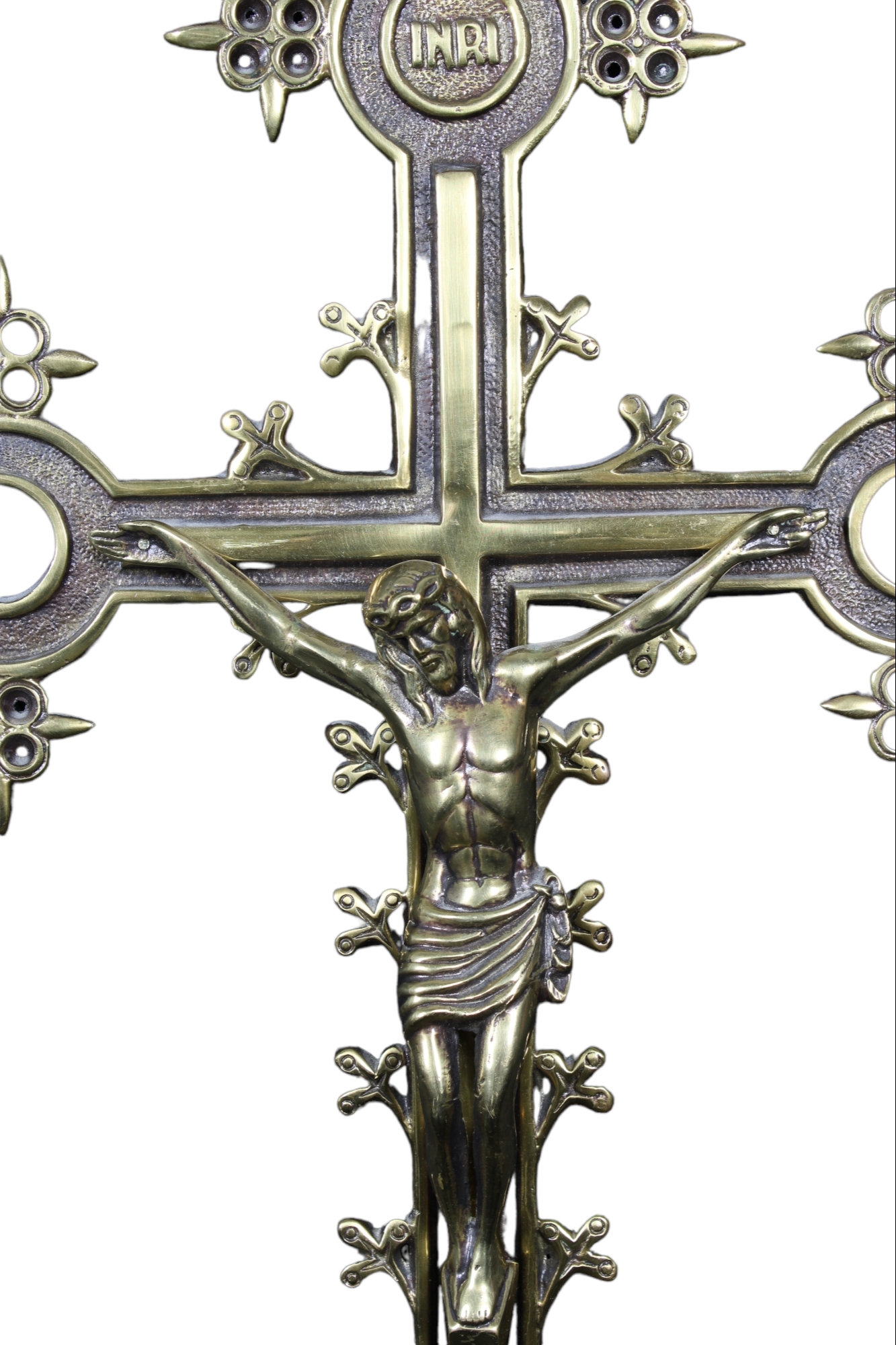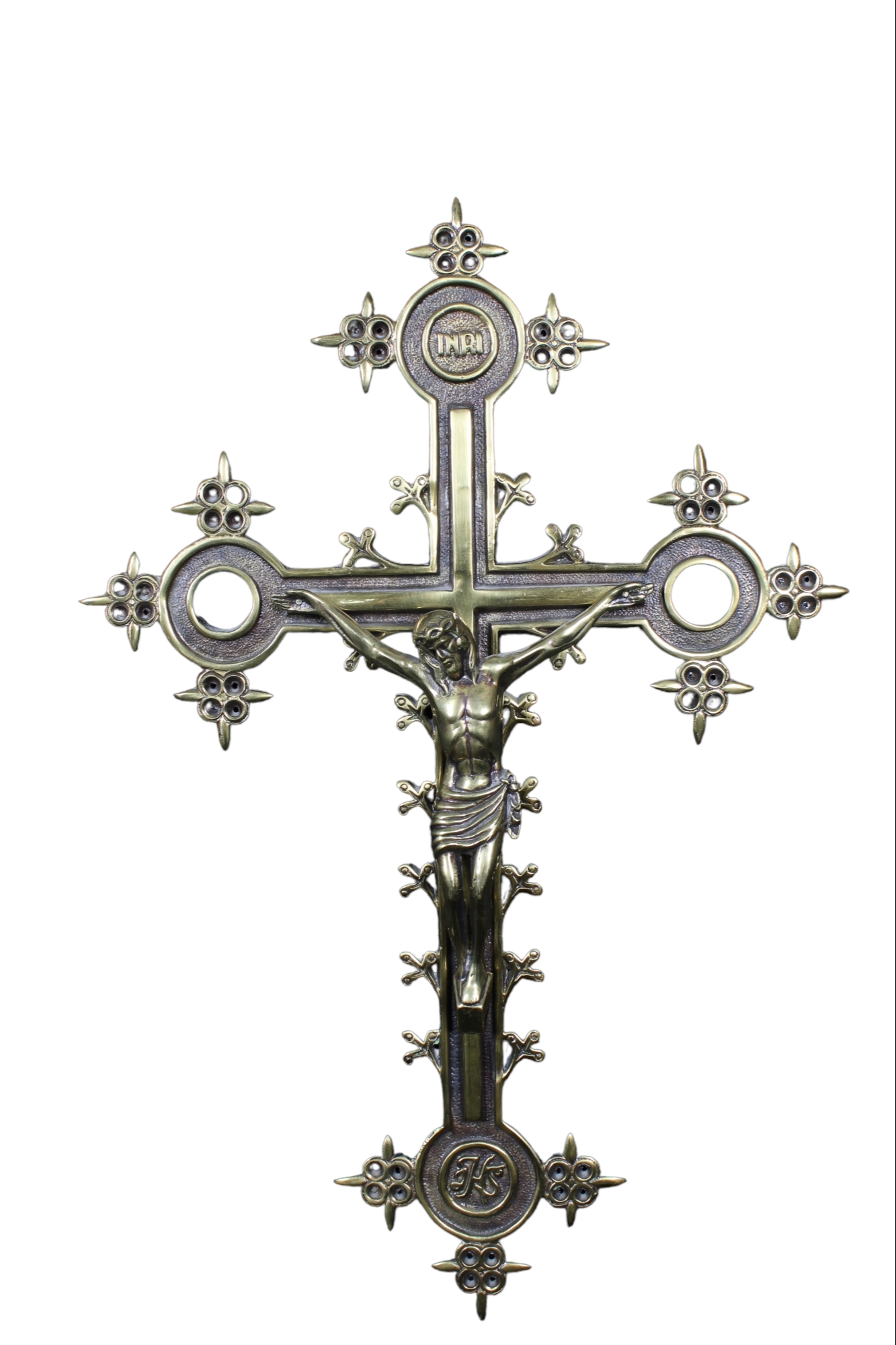 in bronzo con capicroce decorati da cerchi e cesellature Italia XX secolo h cm 52,5 x 35
