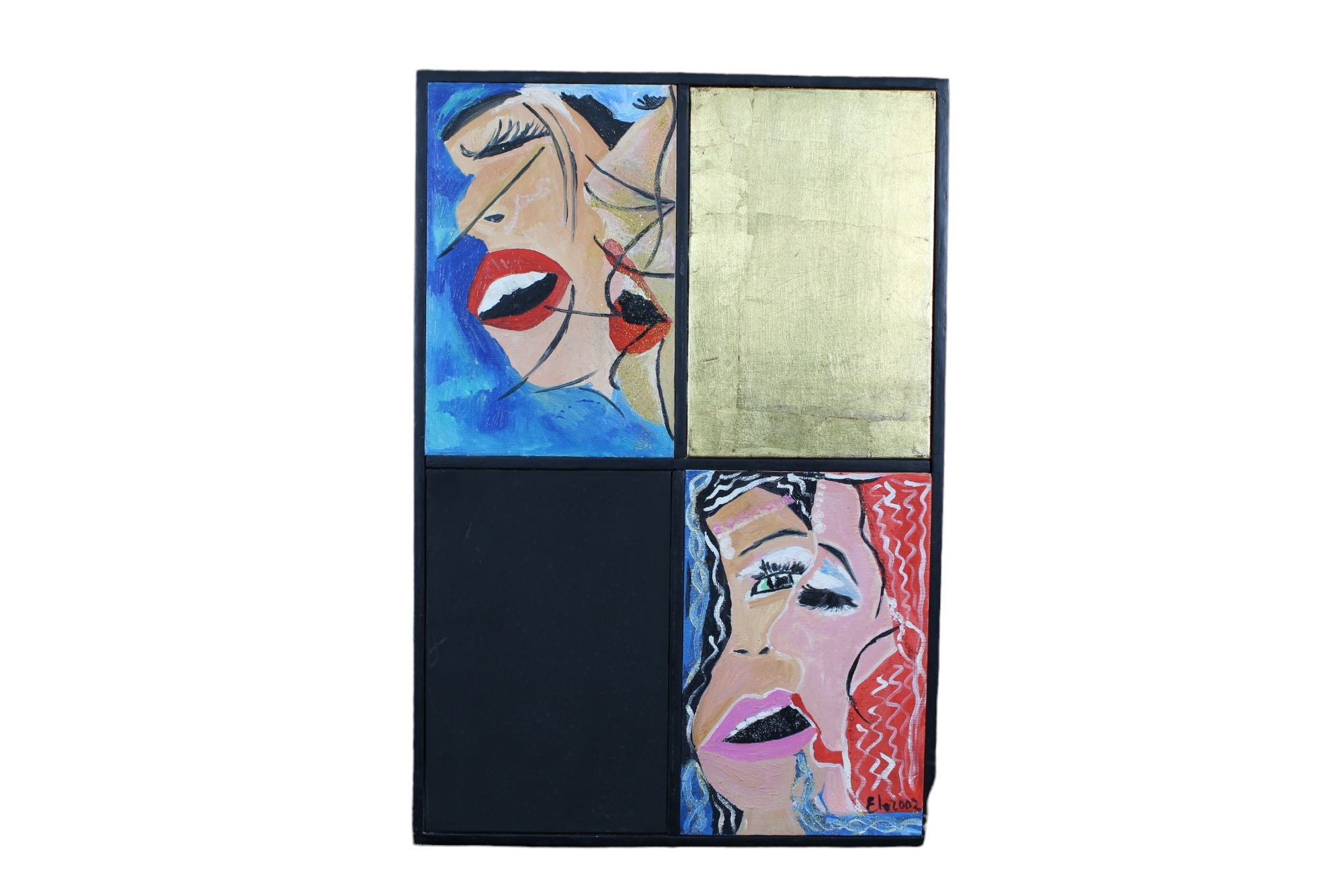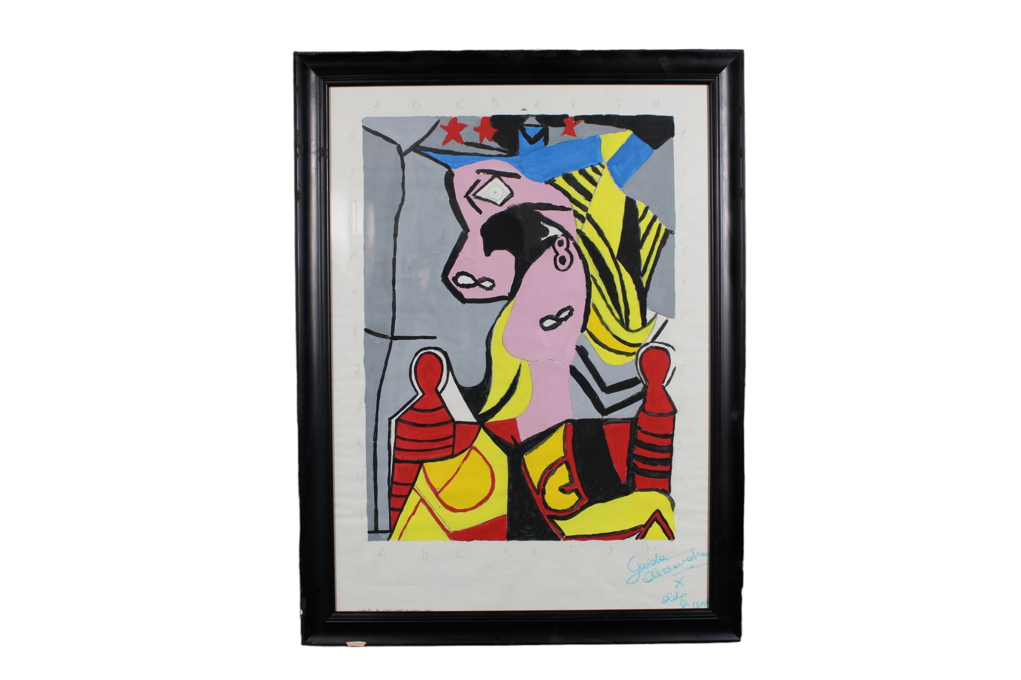 1 quadro moderno firmato in basso a destra Guida Alessandra con dedica e 1 quadro raff volti di donna firmato in basso a destra Ele 2002 h cm 63 x 43 / h cm 70 x 50
