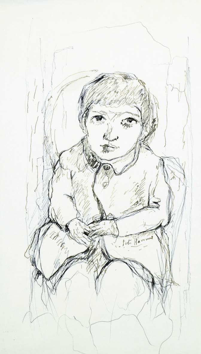 RAVENNA JUTI Annone Veneto (Ve) 1897 - Treviso 1972 Figura tecnica mista su carta 42x24 firma in basso a destra