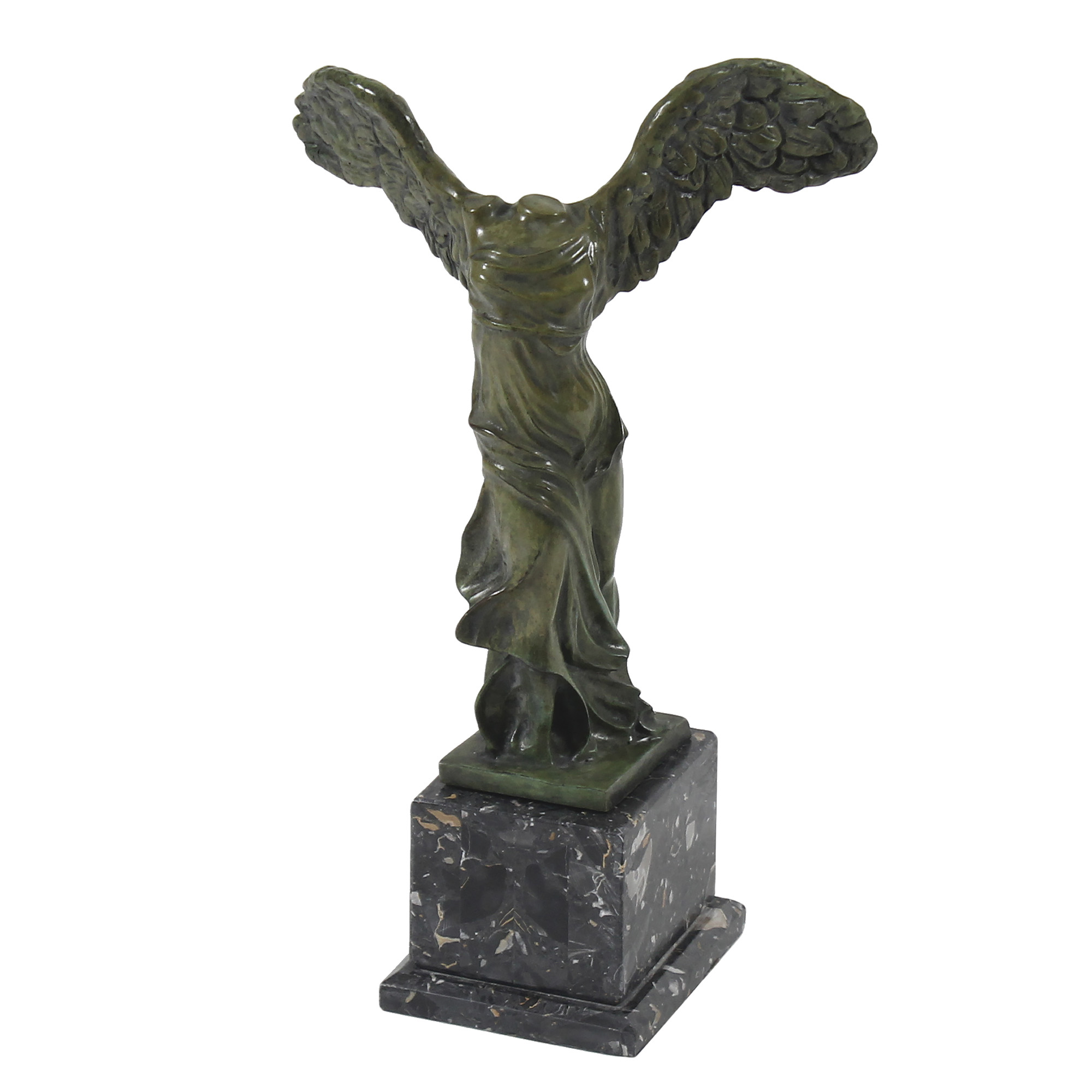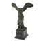 Nike di Samotracia in bronzo patinato, XX secolo, poggiante su base parallelepipeda in marmo portoro, complessivamente h. cm. 48