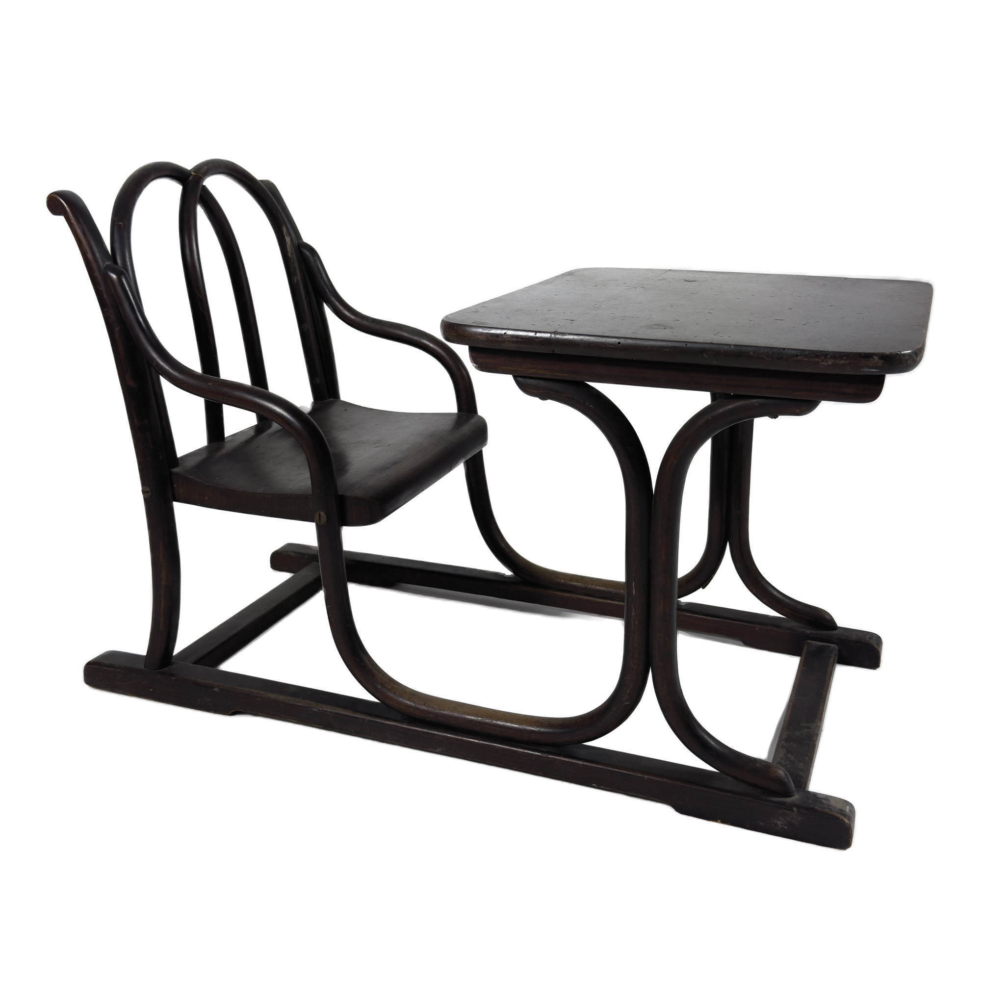 Banchetto in faggio curvato a fuoco, Vienna, Thonet, timbro in nero e...