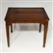 Piccolo tavolino da appoggio, XX secolo, impiallacciato in legni di varie essenze; piano rettangolare su gambe a obelisco, cm. 46x58x43 (qualche difetto)