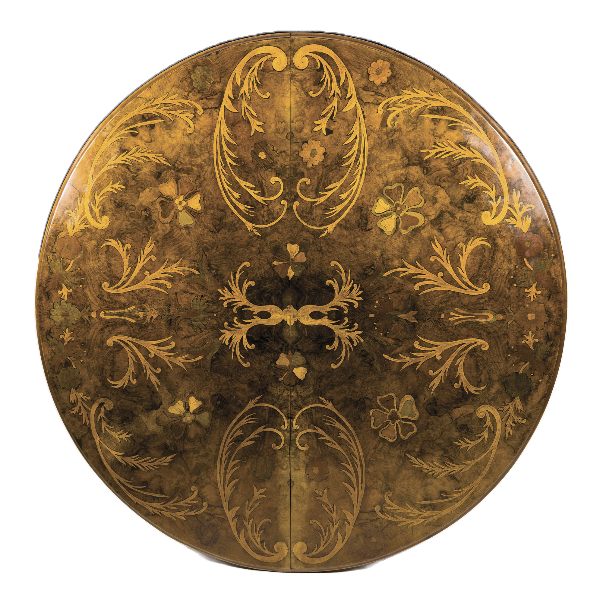 Tavolo impiallacciato in noce, XIX secolo, con piano circolare a vela...