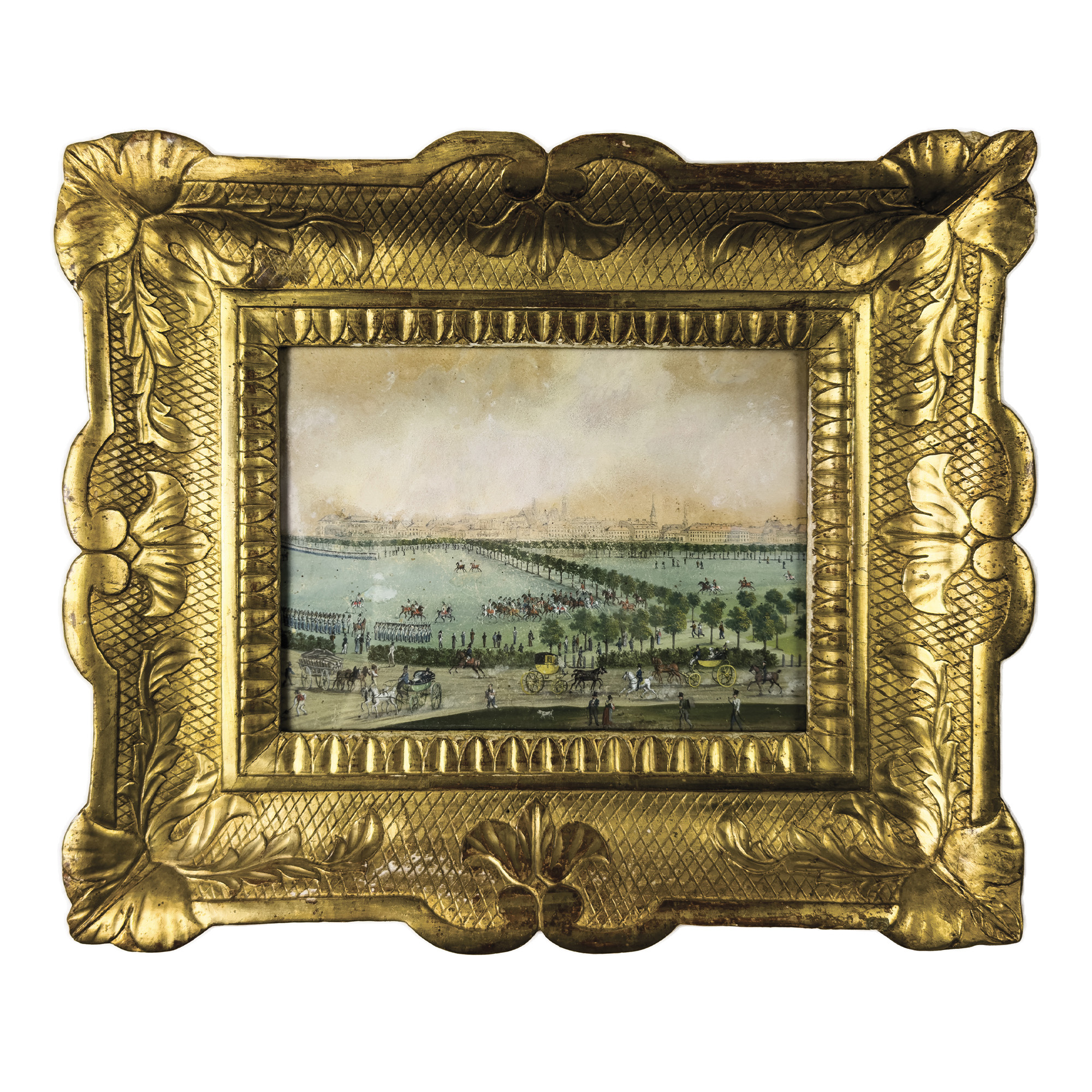 Pittore del XIX secolo, Parata a Campo di Marte tempera su carta, la luce cm....