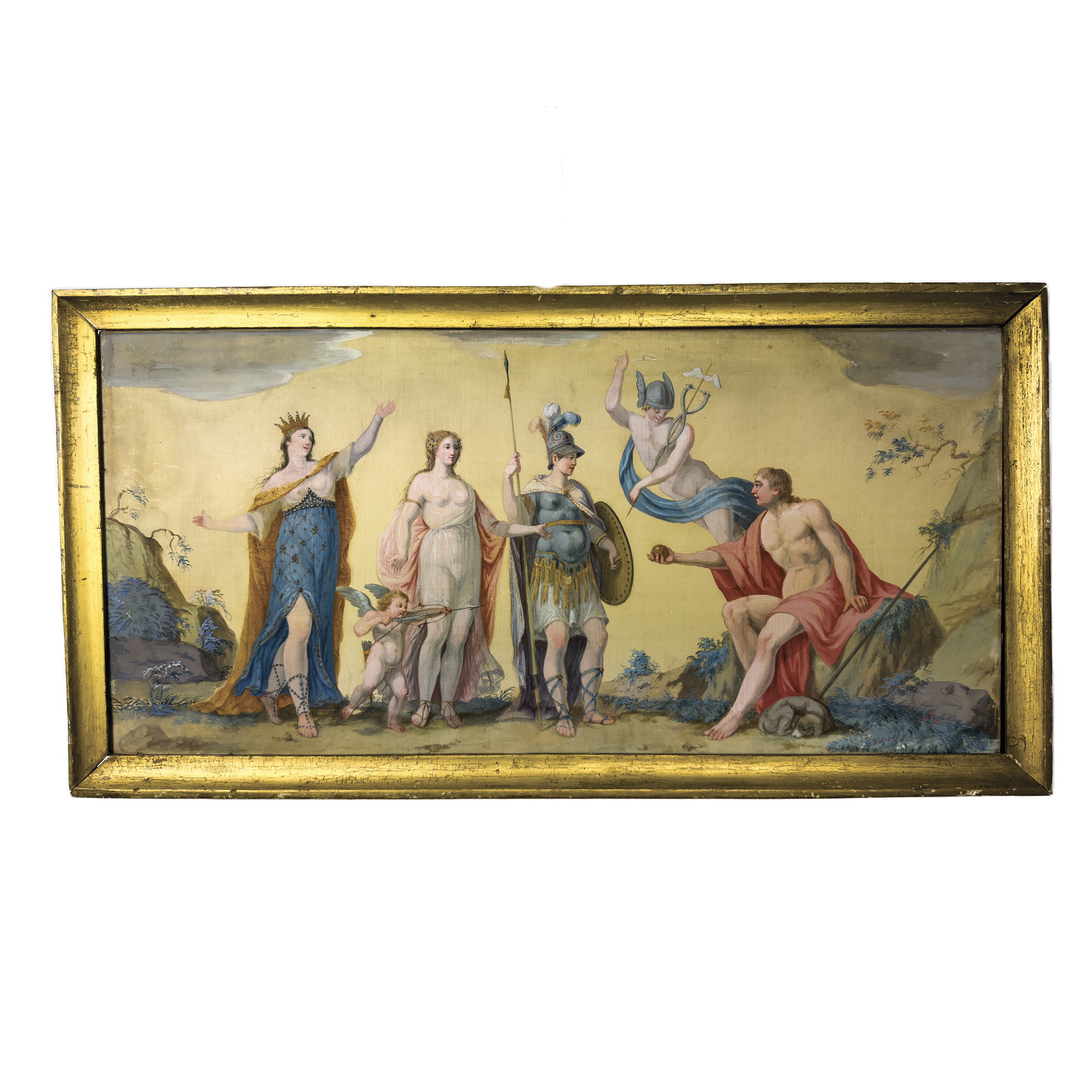 Pittore del XIX secolo, Giudizio di Paride tempera su seta applicata su tela,...
