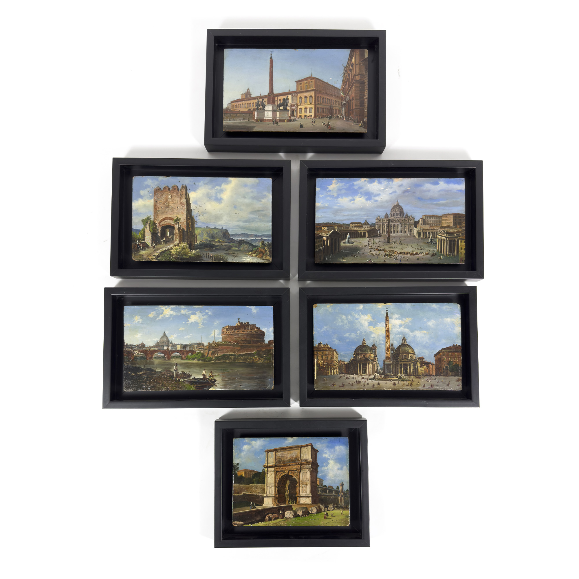 Pittore della fine del XIX secolo, Vedute di Roma sei dipinti a olio su...