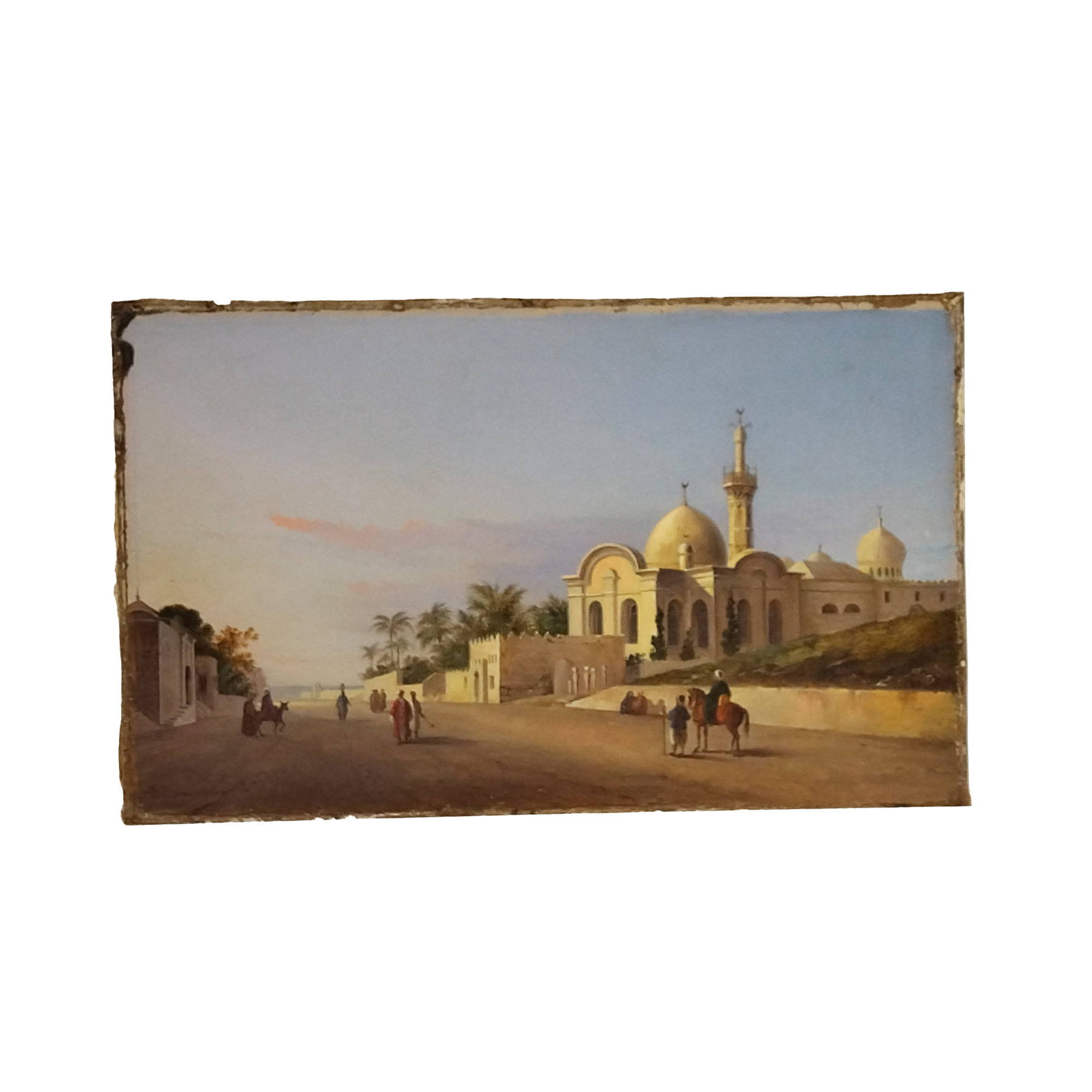 Jean Melan XIX secolo, Veduta de Il Cairo olio su tela applicata su cartone,...