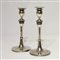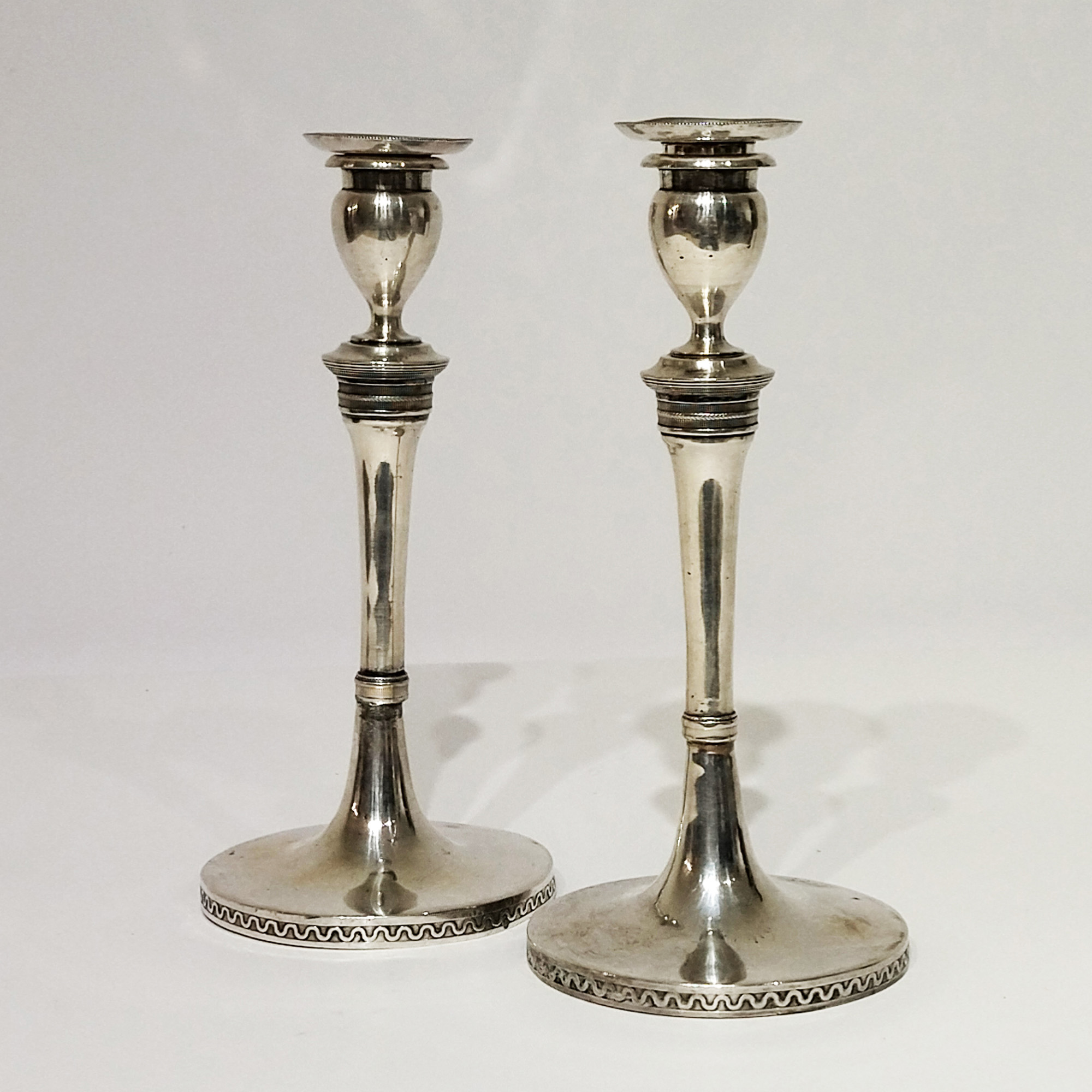 Coppia di candelieri in argento, Vienna, inizi del XIX secolo, stelo affusolato che sostiene una bobèche vasiforme; piede circolare, h. cm. 22, peso complessivo gr. 620